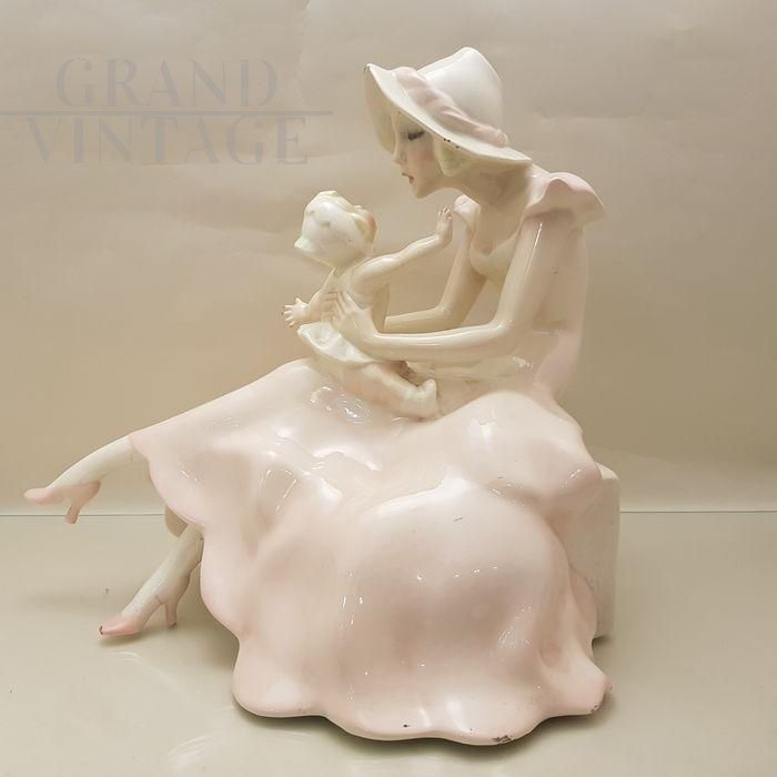Scultura maternità in ceramica Essevi firmata Sandro Vacchetti