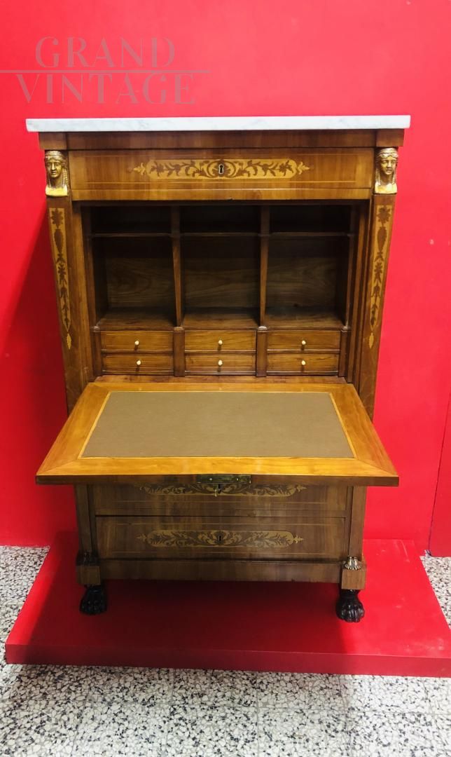 Secretaire Impero Ritorno d'Egitto con piano in marmo