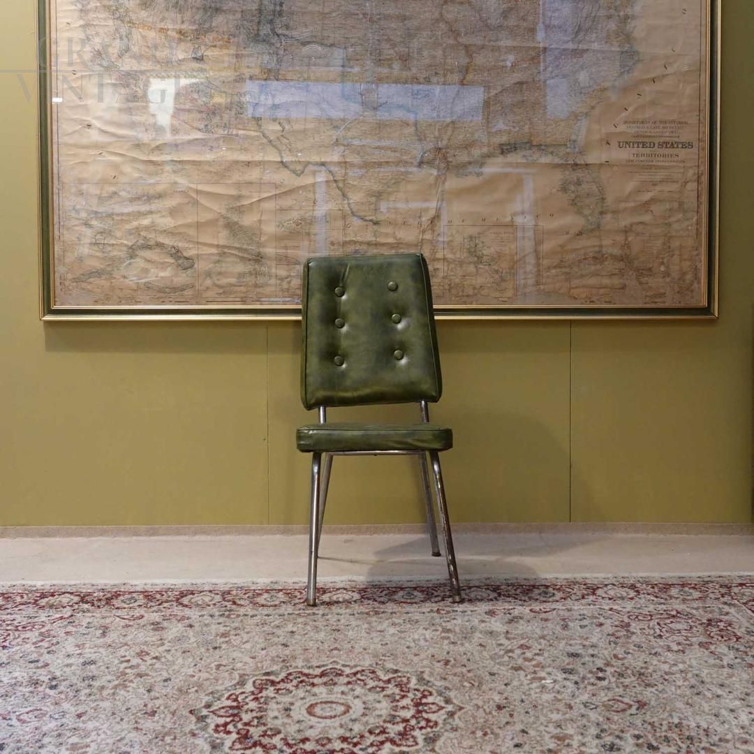 Sedia da salotto anni ’50 in vivace tonalità verde, un perfetto equilibrio tra design retrò e personalità. Ideale per dare un tocco di colore e originalità agli spazi, è perfetta per arredamenti vintage, ambienti creativi o set dal gusto eclettico.