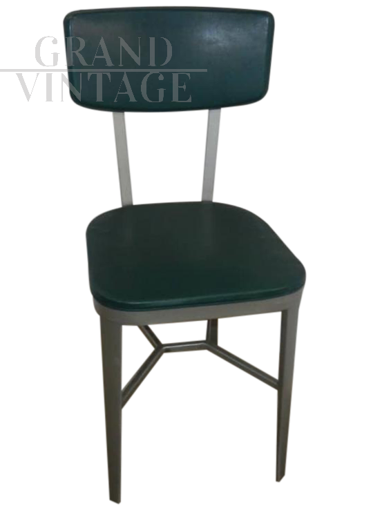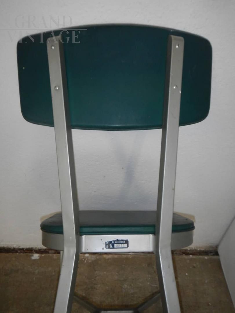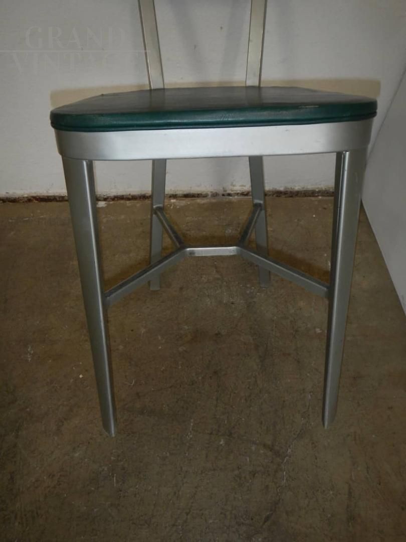 Sedia da ufficio vintage dal design particolare, con struttura in allumininio e seduta e schienale in similpelle, anni '50.