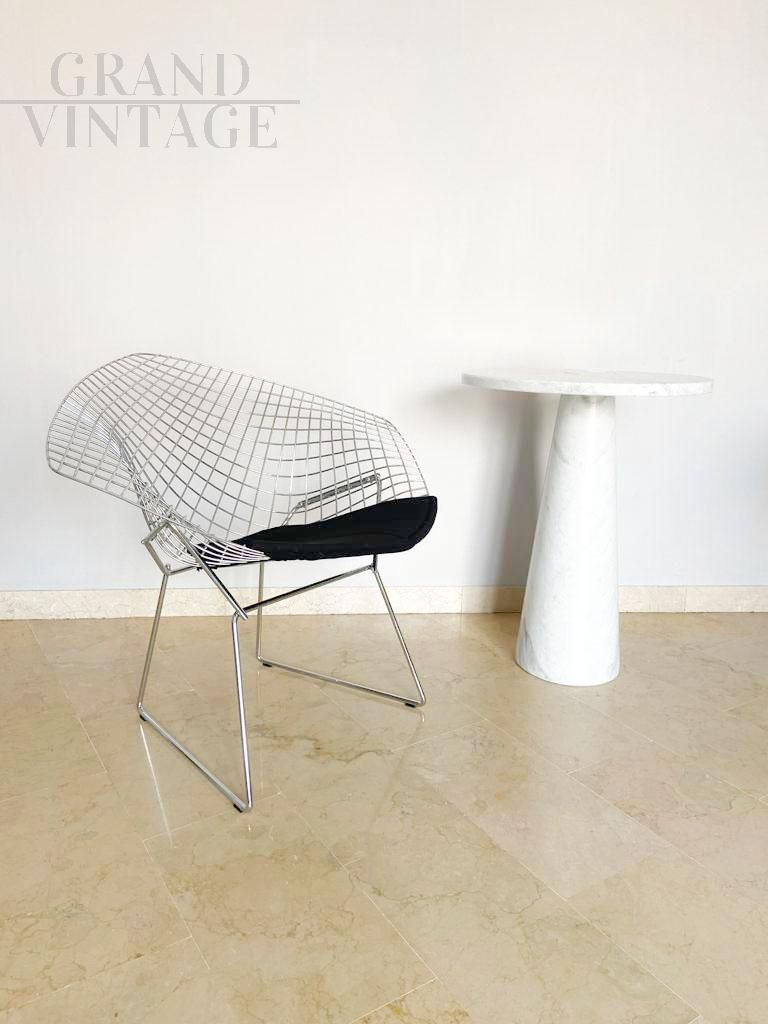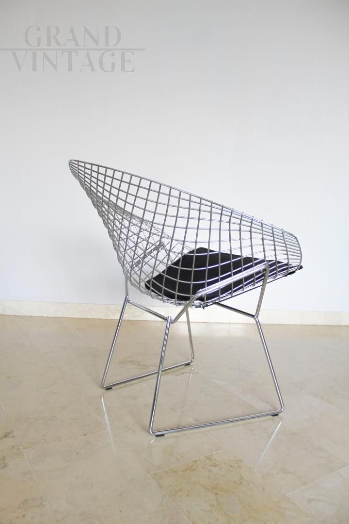 Sedia diamante - diamond chair di Harry Bertoia per Knoll, Italia anni '80, con la classica struttura a rete di acciaio, completa di cuscino, in ottimo stato di conservazione, firma visibile, design inconfondibile ed emozionante