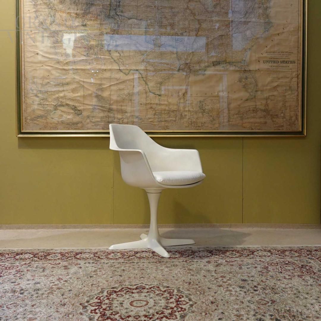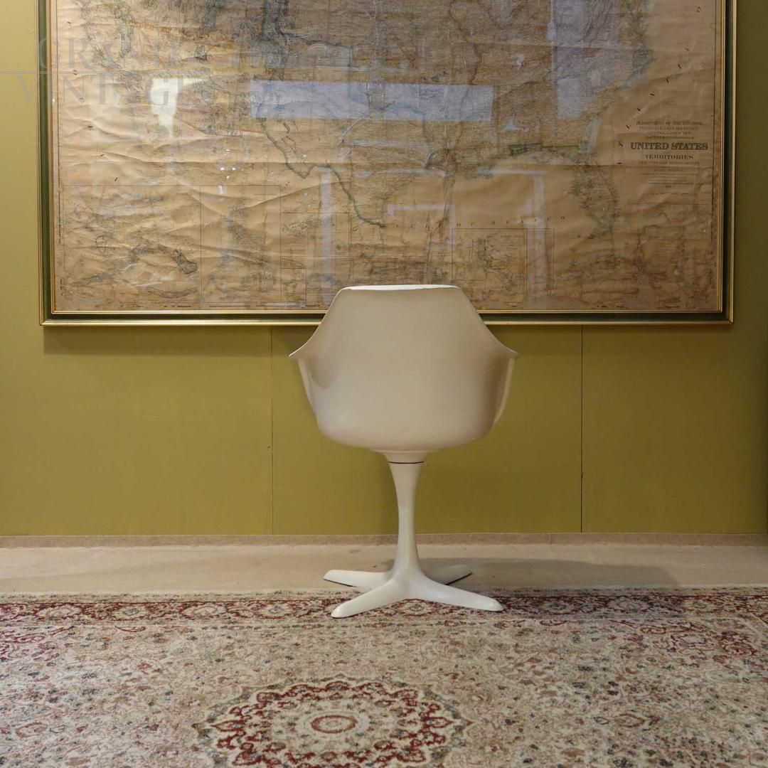 Iconica sedia Tulip degli anni ’70, questo modello a 4 piedi è tipico del designer Maurice Burke, un simbolo intramontabile del design futuristico. Con la sua base centrale e le linee fluide, incarna l’eleganza e l’innovazione del modernismo del secolo scorso. Ideale per ambienti contemporanei, spazi creativi o set fotografici dal carattere deciso.