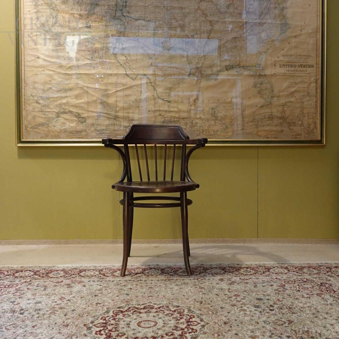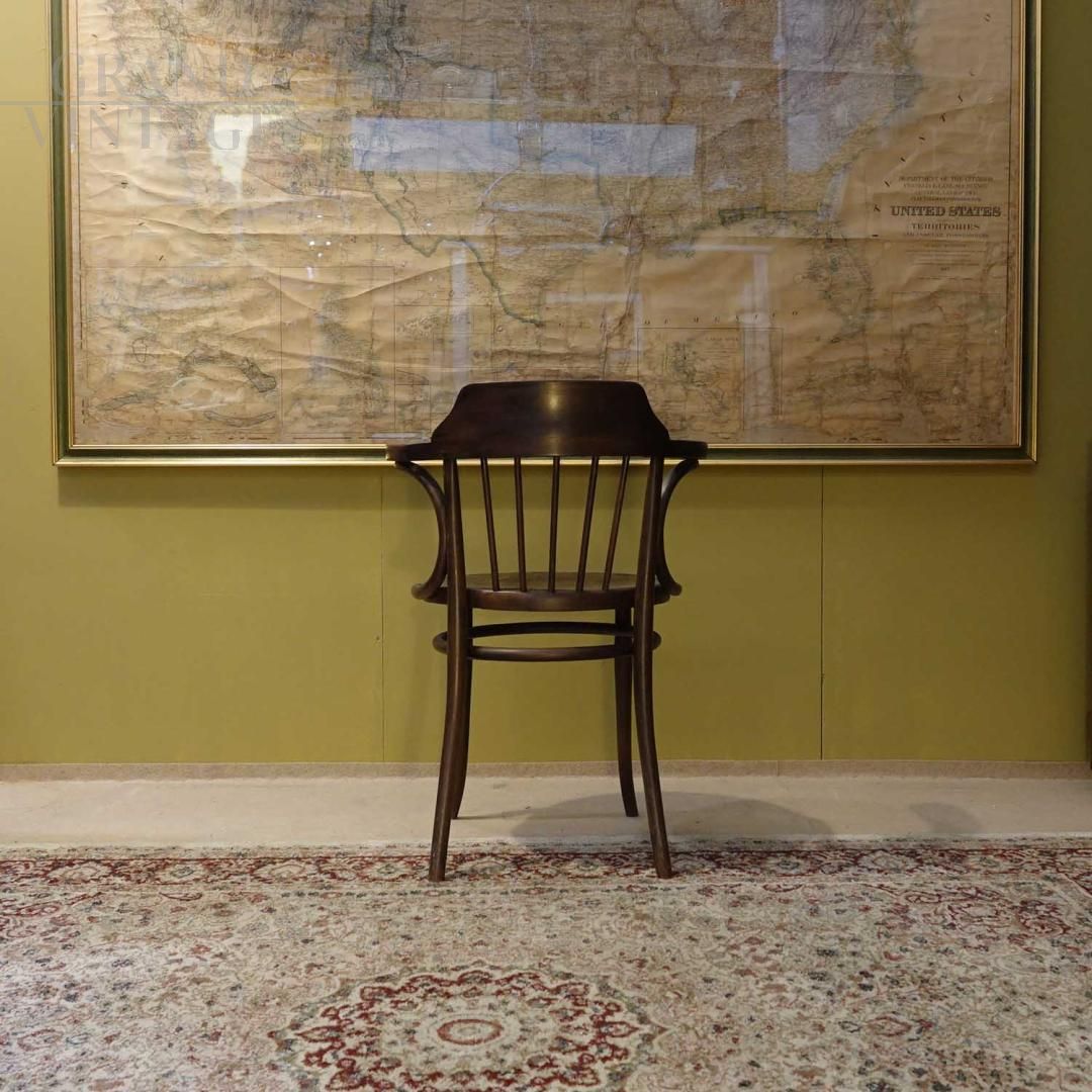 Solida, rustica e accogliente: questa sedia in legno scuro in stile Thonet richiama il calore delle case di campagna e la semplicità del vivere autentico. Le sue linee tradizionali e il