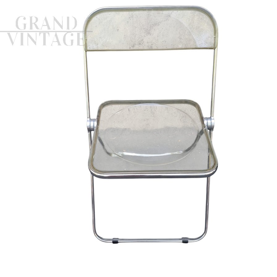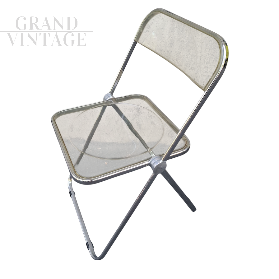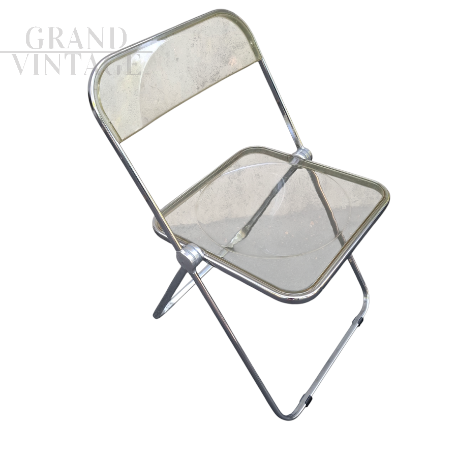 La sedia pieghevole Plia è un'icona del design vintage, disegnata nel 1967 da Giancarlo Piretti e prodotta da Anonima Castelli. Grazie al suo innovativo perno a tre dischi, questa sedia rappresentò una vera rivoluzione nel concetto di seduta pieghevole. Realizzata in plexiglass e acciaio, la sedia Plia è elegante e resistente, perfetta per arredare qualsiasi ambiente in stile vintage.