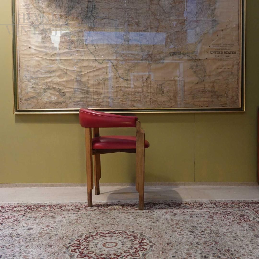 Sedia poltroncina curva anni '60 in skai bordeaux e legno