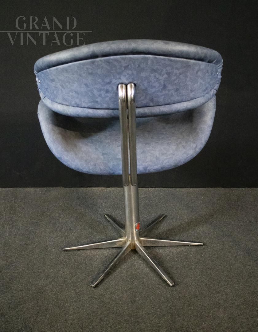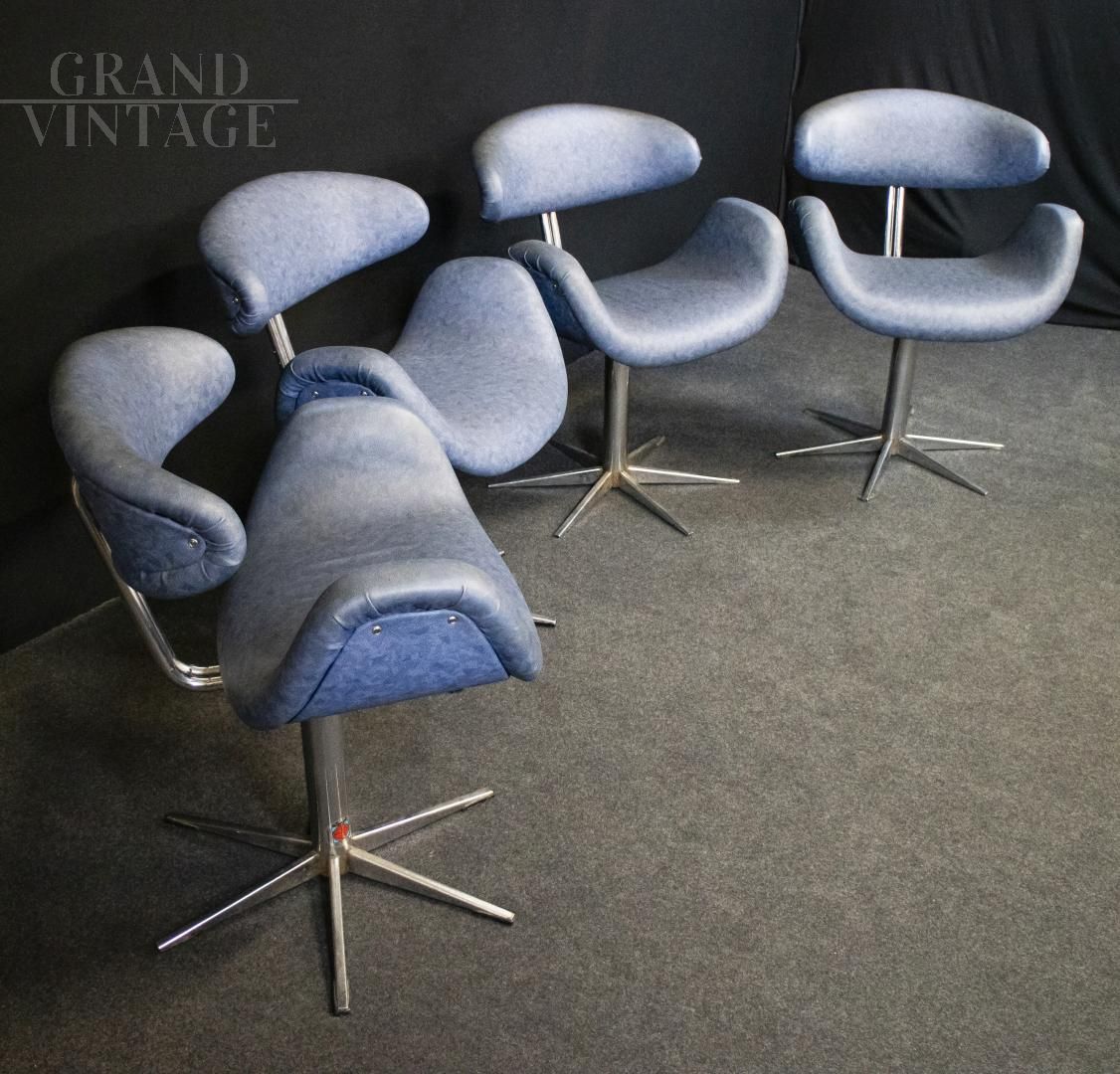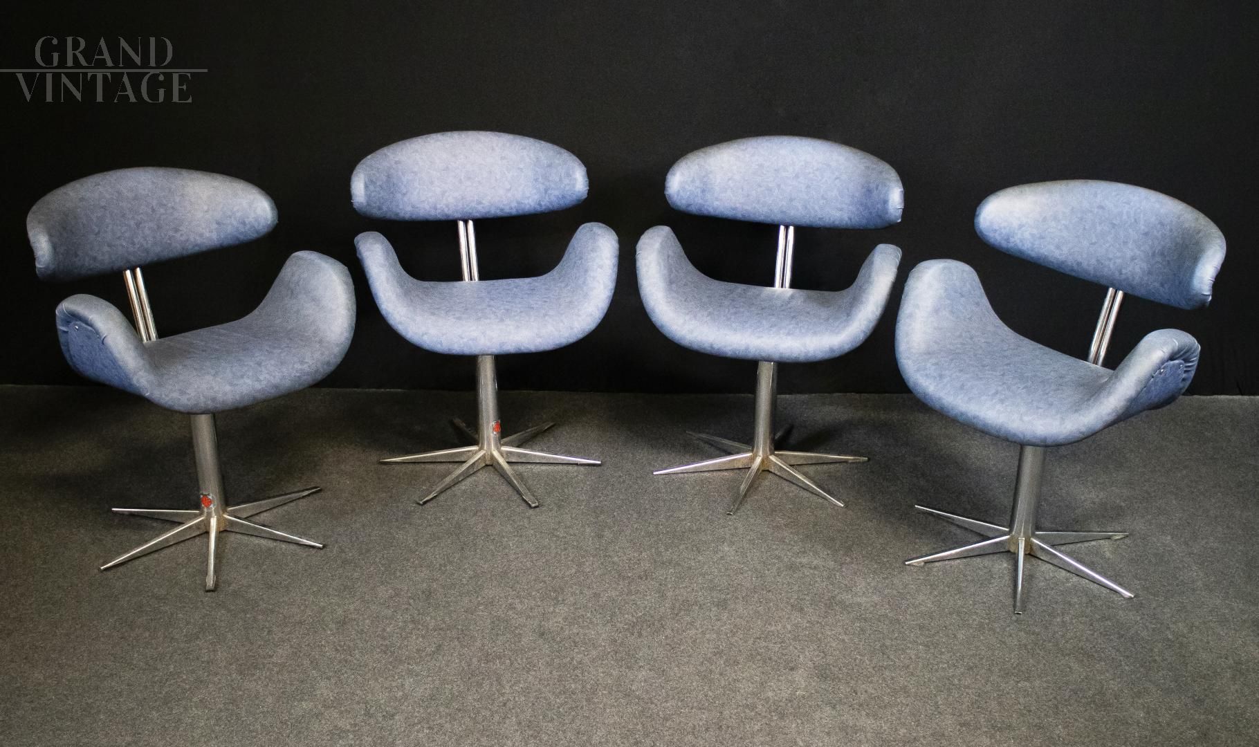 Gruppo di 4 sedie da parrucchiere vintage originali degli anni '60, in acciaio cromato e ecopelle azzurra.