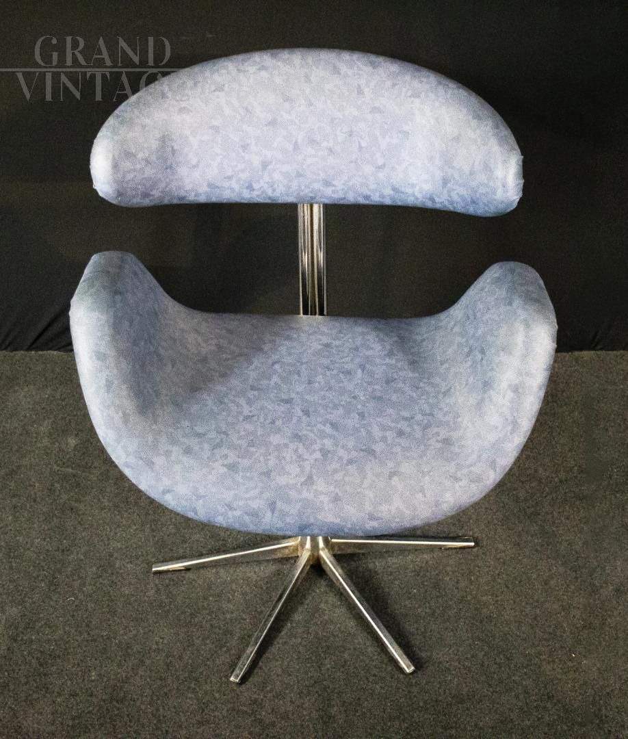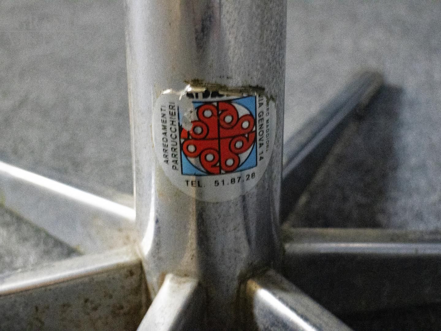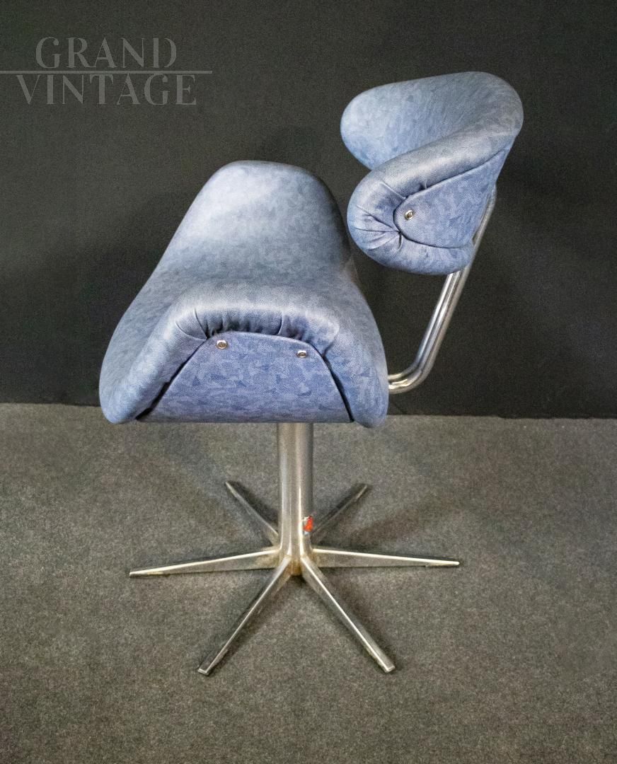 Gruppo di 4 sedie da parrucchiere vintage originali degli anni '60, in acciaio cromato e ecopelle azzurra.