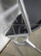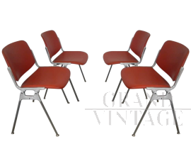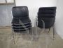 Sedie da ufficio Anonima Castelli Italia con struttura in metallo e seduta e schienale in compensato imbottito con copertura in similpelle nera. Le sedie sono impilabili come in foto, sono in buone condizioni a parte qualche difetto sullo schienale. Disponibili 8 pezzi, il prezzo si riferisce alla singola sedia.