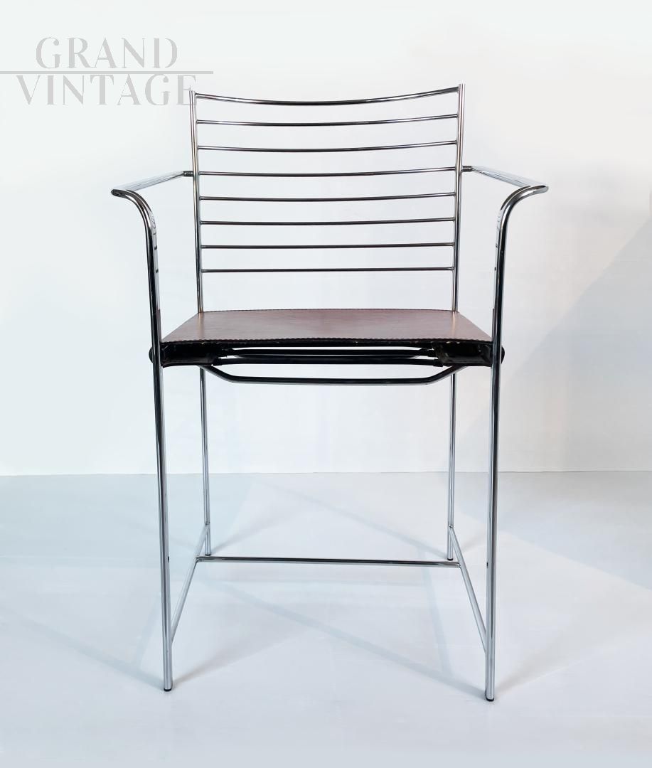 Sedie in metallo di Cidue con seduta in cuoio, anni '70