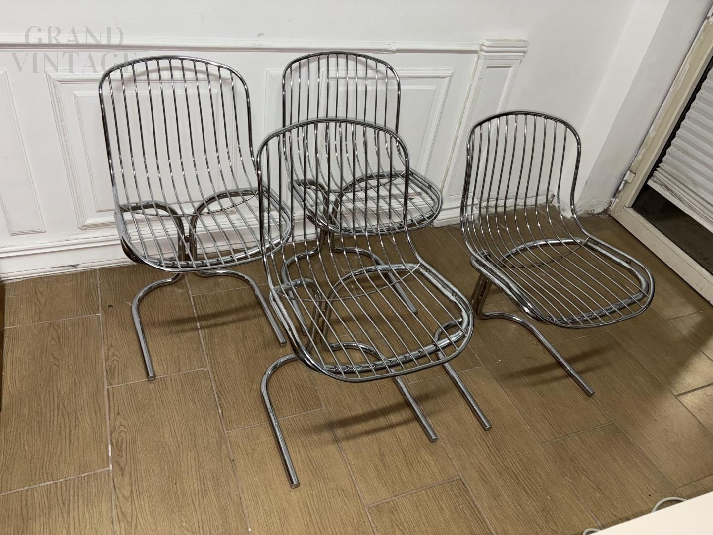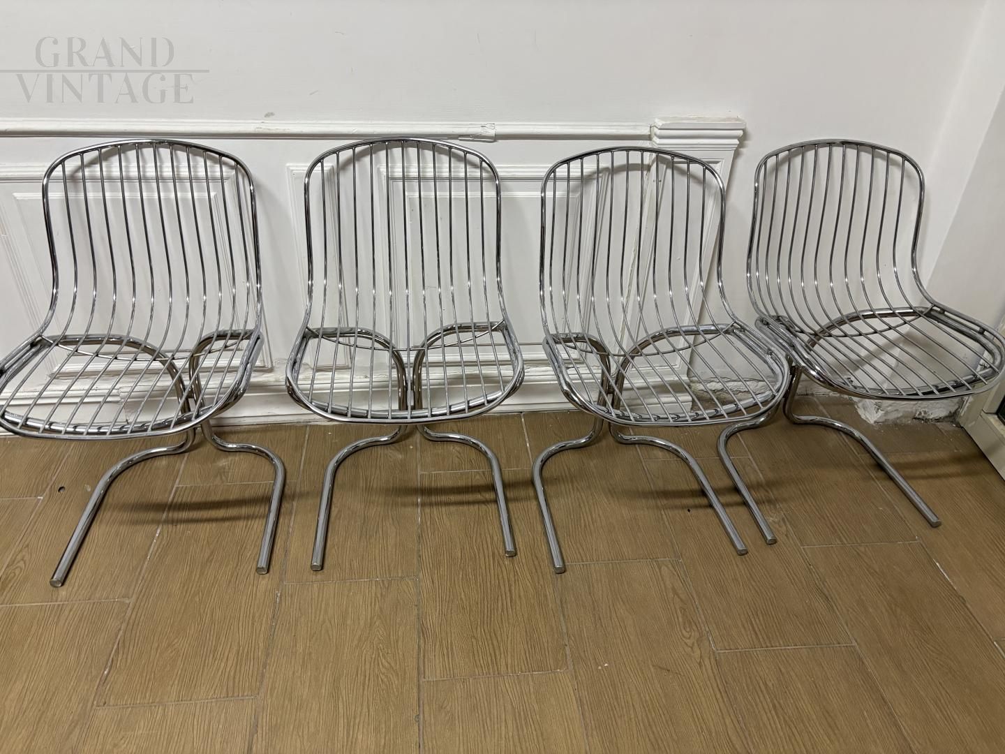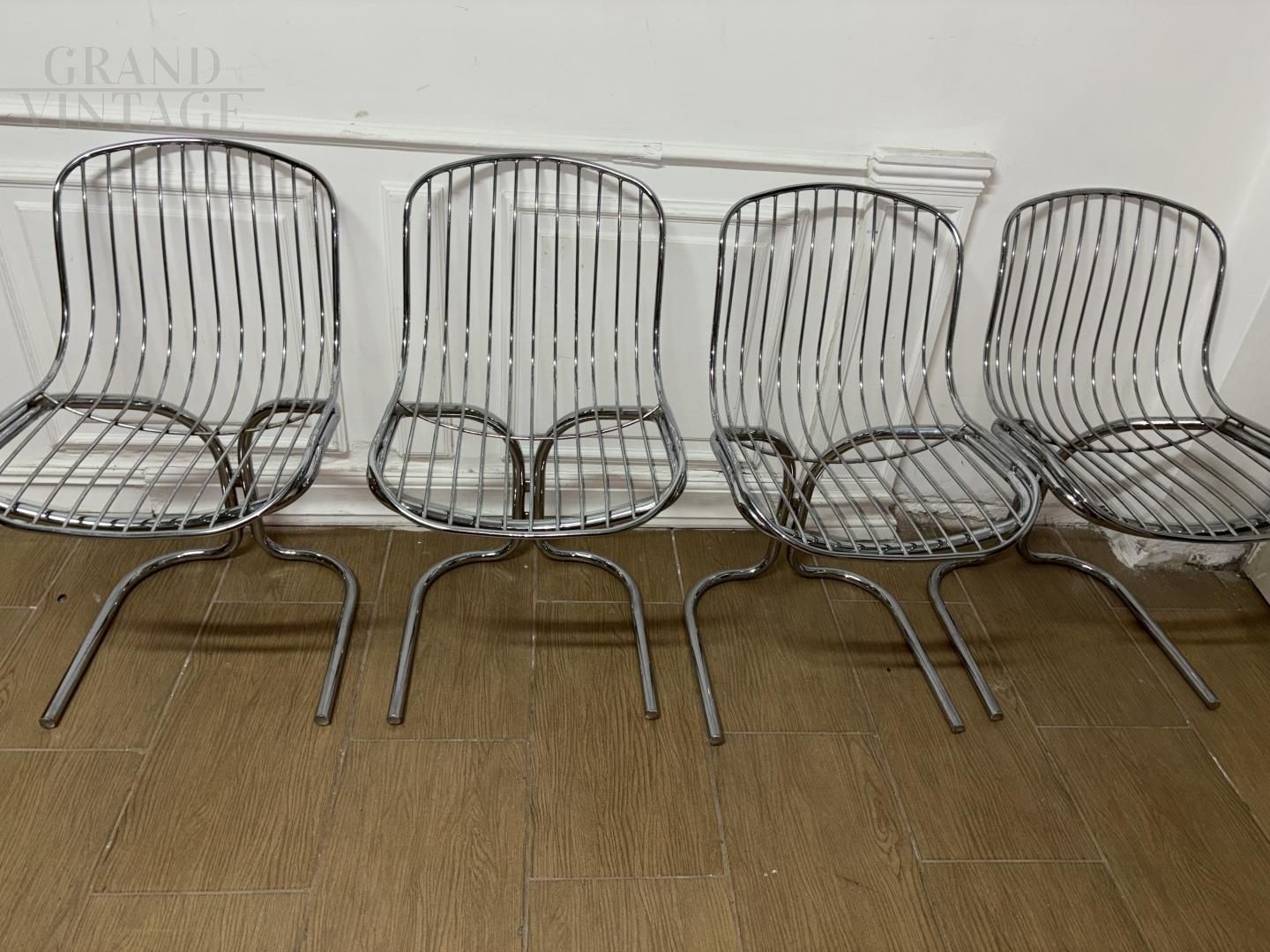 Set di 4 sedie da pranzo Radiofreccia di Gastone Rinaldi per RIMA in acciaio cromato.