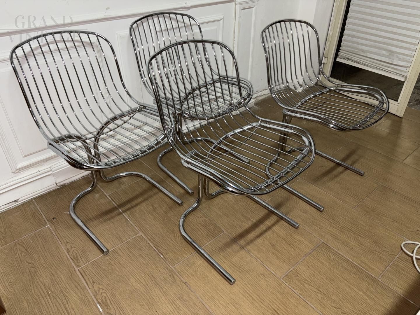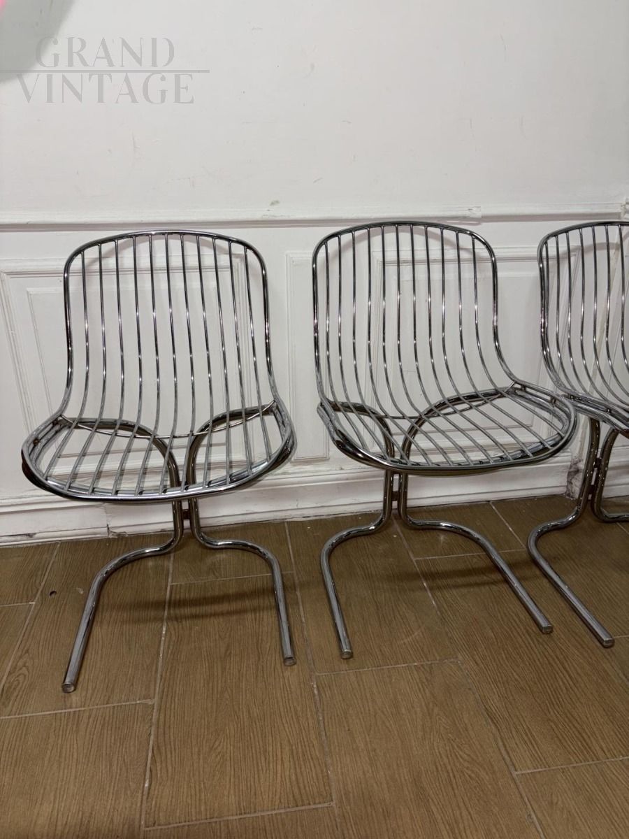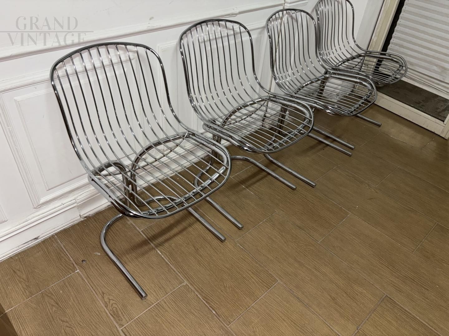 Set di 4 sedie da pranzo Radiofreccia di Gastone Rinaldi per RIMA in acciaio cromato.
