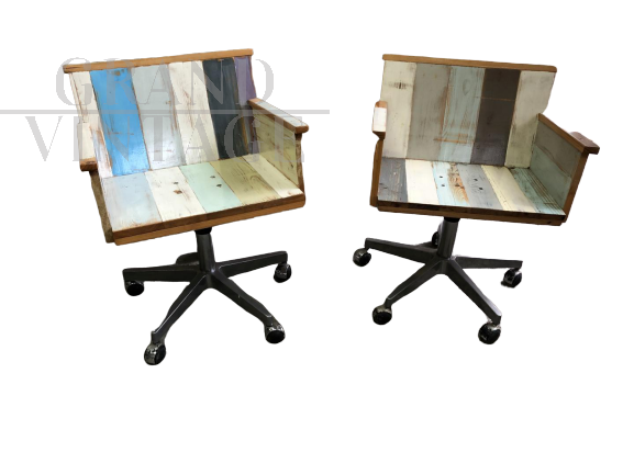 Sedie vintage con rotelle in legno patchwork