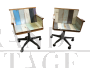 Due poltrone sedie vintage con le rotelle in patchwork di diversi legni, anni '60.