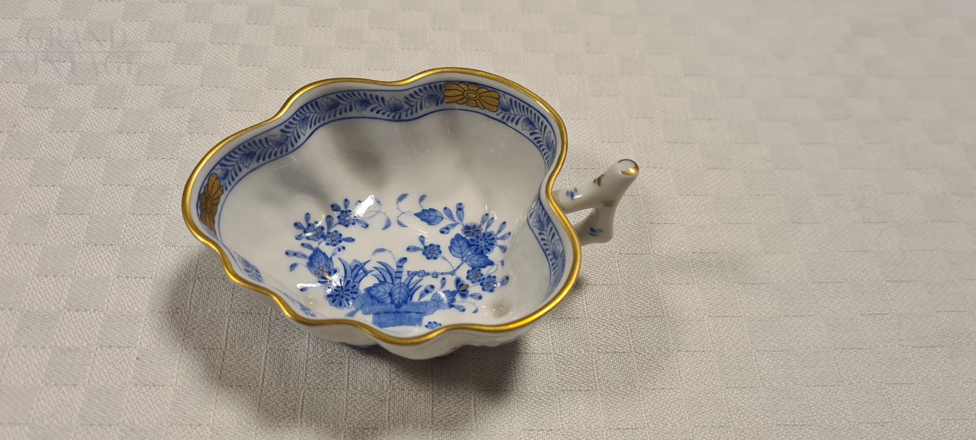 Raffinato servizio da caffè in porcellana di Herend Hungary tête-à-tête, cioè per due persone. Il modello del servizio è L'Apponyi Blue, decoro noto anche come Chinese Bouquet, ed è stato creato per il Conte Albert Apponyi, un famoso politico e diplomatico ungherese della fine dell'800. Il disegno raffigura un cesto di fiori indiani stilizzati dipinti rigorosamente a mano libera dai maestri pittori di Herend. Il decoro, oltre al meraviglioso colore blu, presenta delle decorazioni realizzate in oro 24 kt. Il servizio si presenta intatto e perfetto, senza nessun difetto, come si può evincere dalle foto.