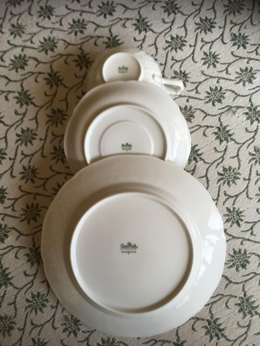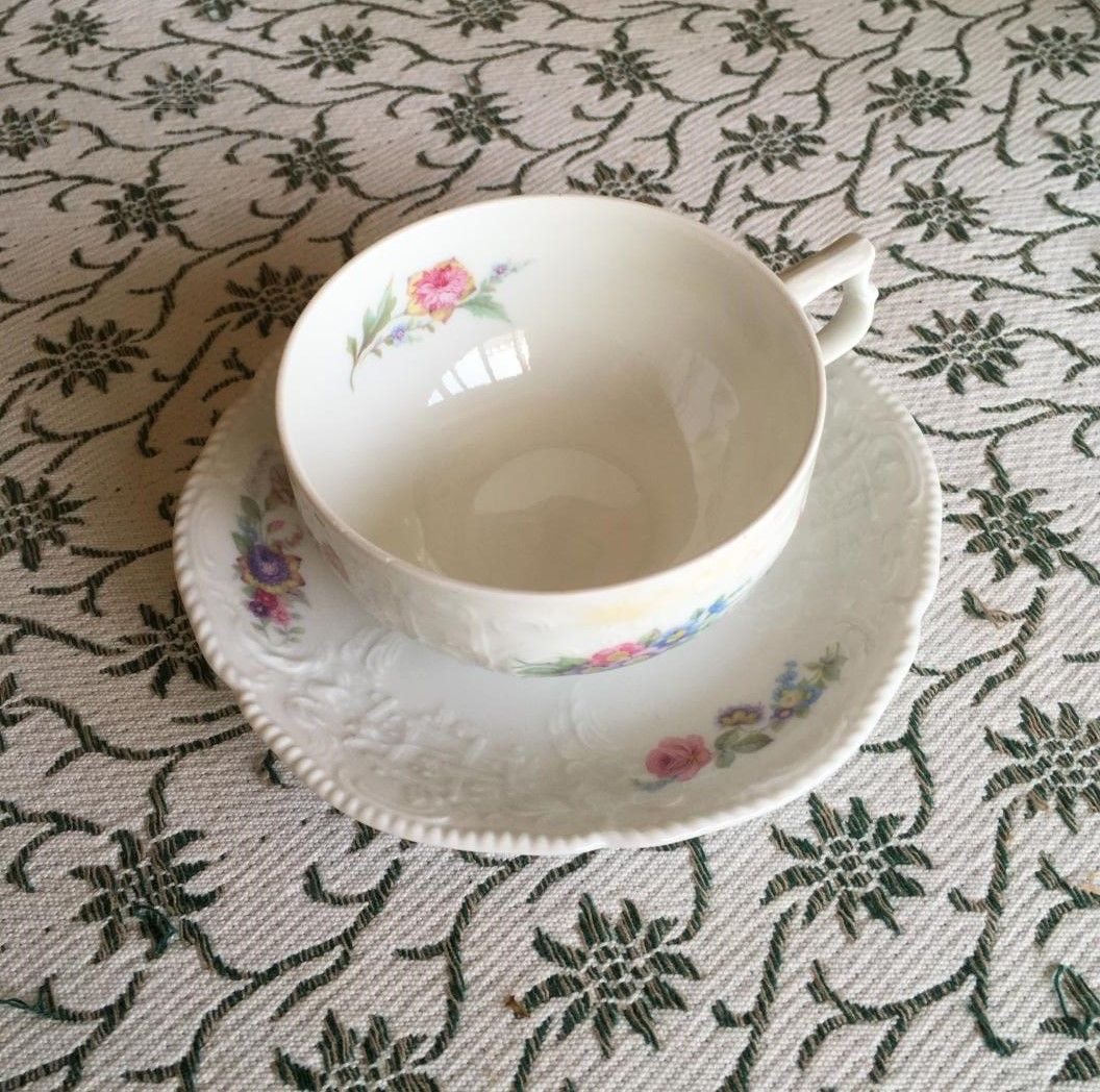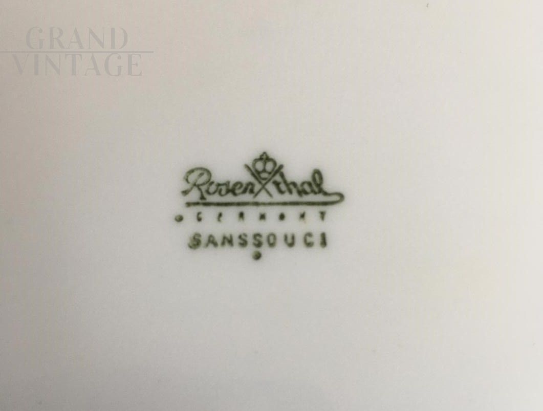 Servizio da the completo Rosenthal Sanssouci, porcellana bianca con decori floreali composto da sei tazze, sei piattini the, sei piatti dolce, mai usato, in perfette condizioni.