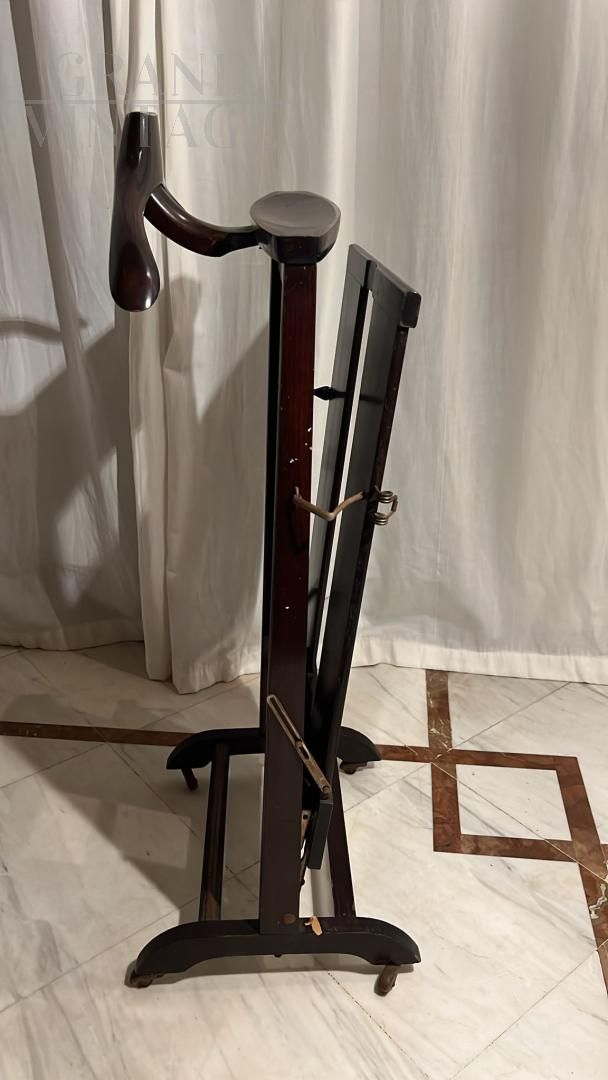 Servomuto vintage attribuito ai Fratelli Reguitti con piega pantaloni, in legno di noce e ottone, periodo di produzione anni 1970 - 1979. Stile Midy Century. Presenta naturali segni di usura dovuti all'età