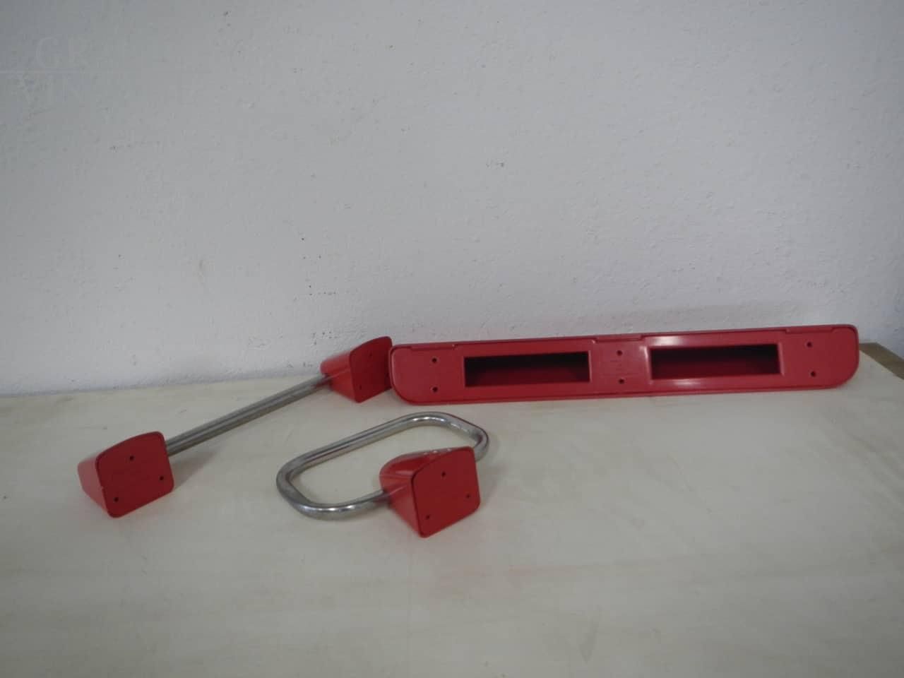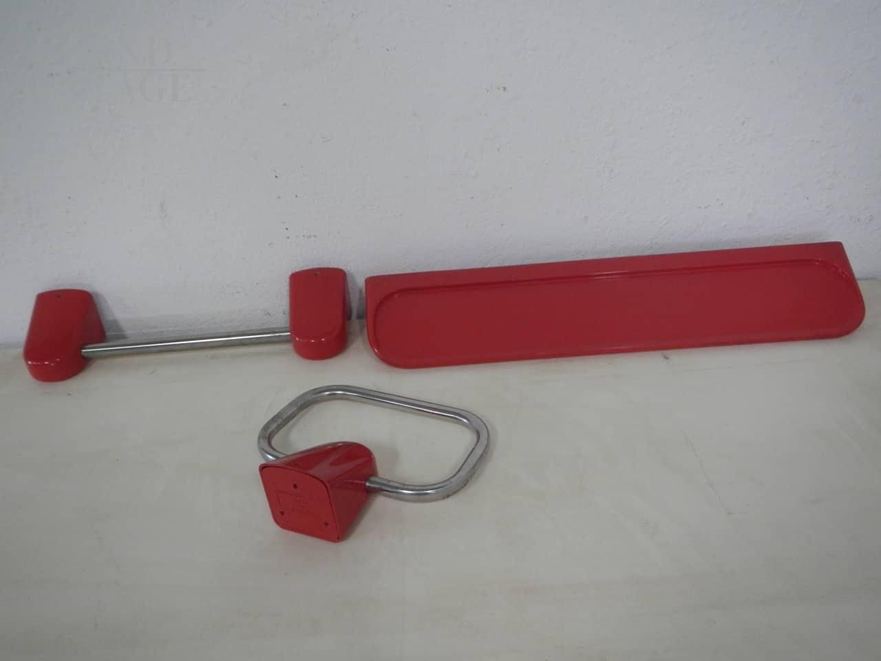 Set da bagno design di Makio Hasuike per GEDY in plastica rossa, anni '70