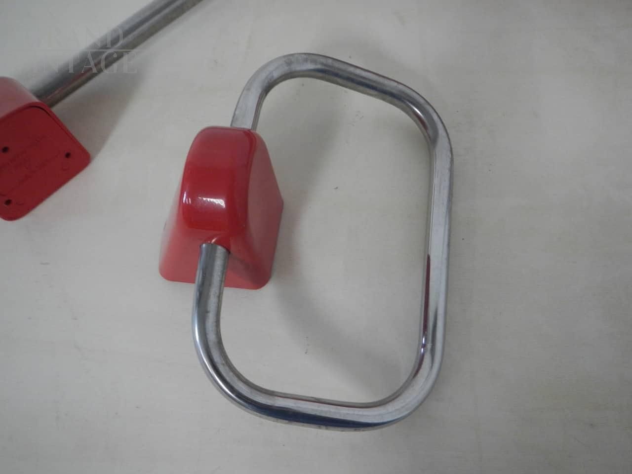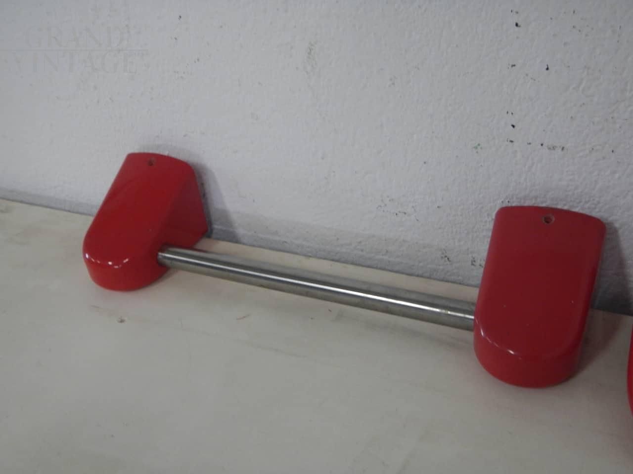 Set da bagno design di Makio Hasuike per Gedy in plastica rossa e metallo composto da una mensola e due portasciugamani.