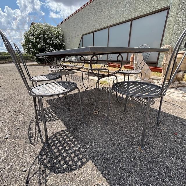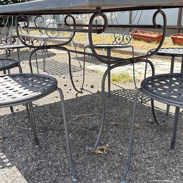 Set da giardino con 6 sedie e un grande tavolo in ferro battuto