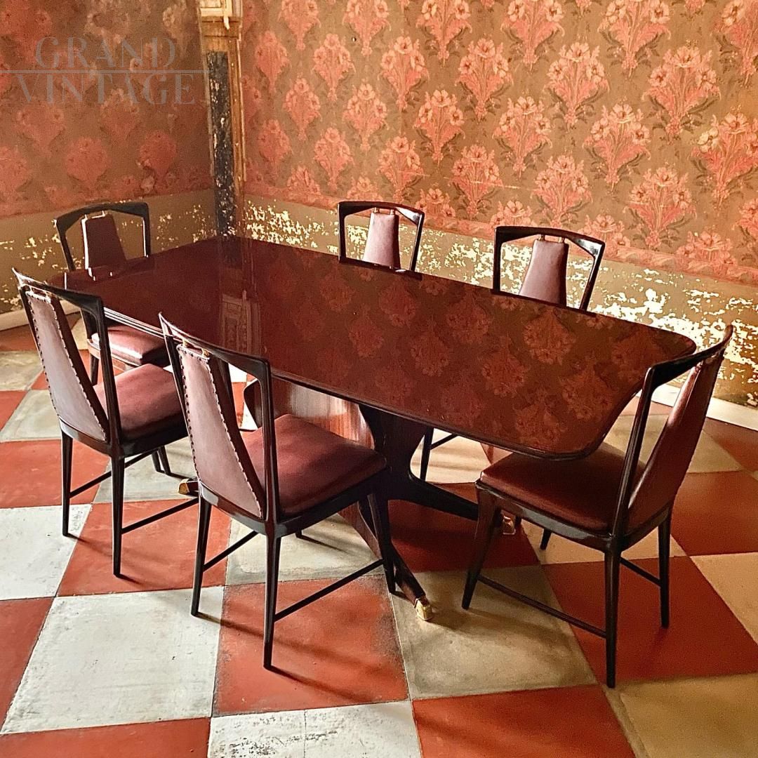Set da soggiorno di Osvaldo Borsani con tavolo e sedie in mogano e palissandro
