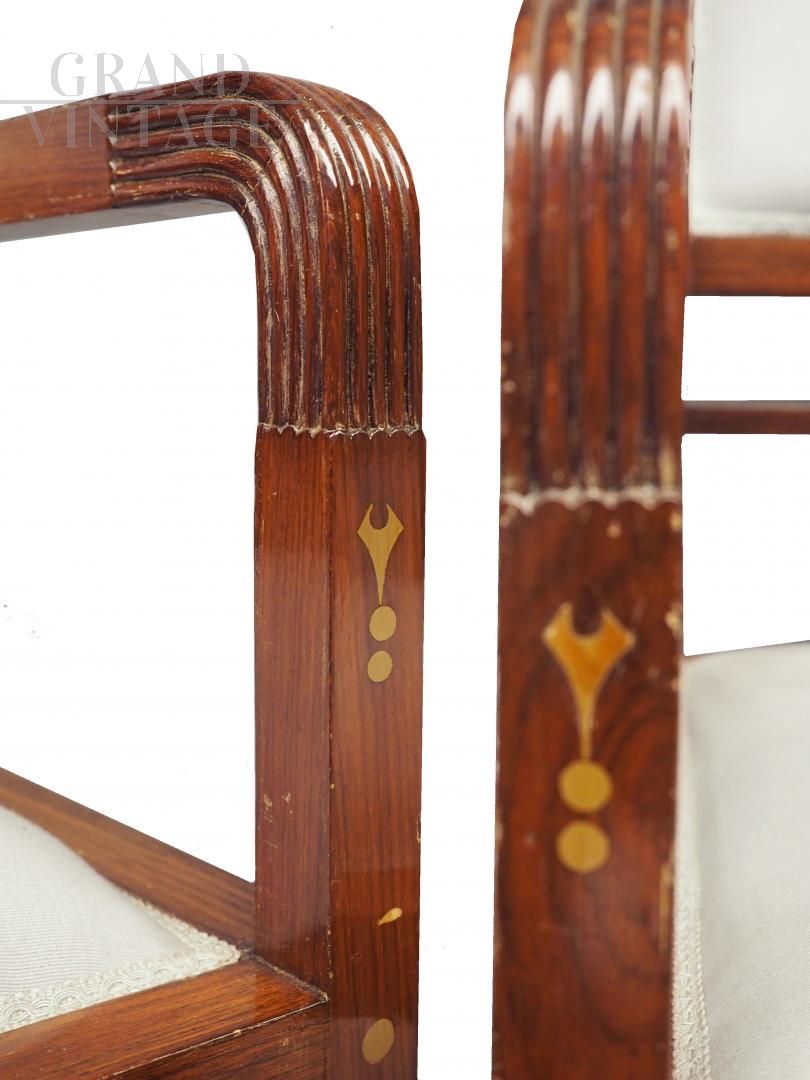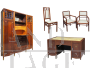 Set da studio Art Nouveau by Piero Zen composto da una libreria, una scrivania, due poltroncine e una sedia, manifattura Zen Milano. Armadio / libreria con due ampie ante laterali e cassetti e ribalta; scrivania con piano in pelle. Piero Zen, figlio di Carlo Zen (1851-1918), è stato uno dei più importanti designer e produttori dell'arredo Art Nouveau in Italia. Questo raro e importante studio appare per la prima volta sul mercato in uno stato di conservazione molto buono (poltrone da sistemare nell'imbottitura).