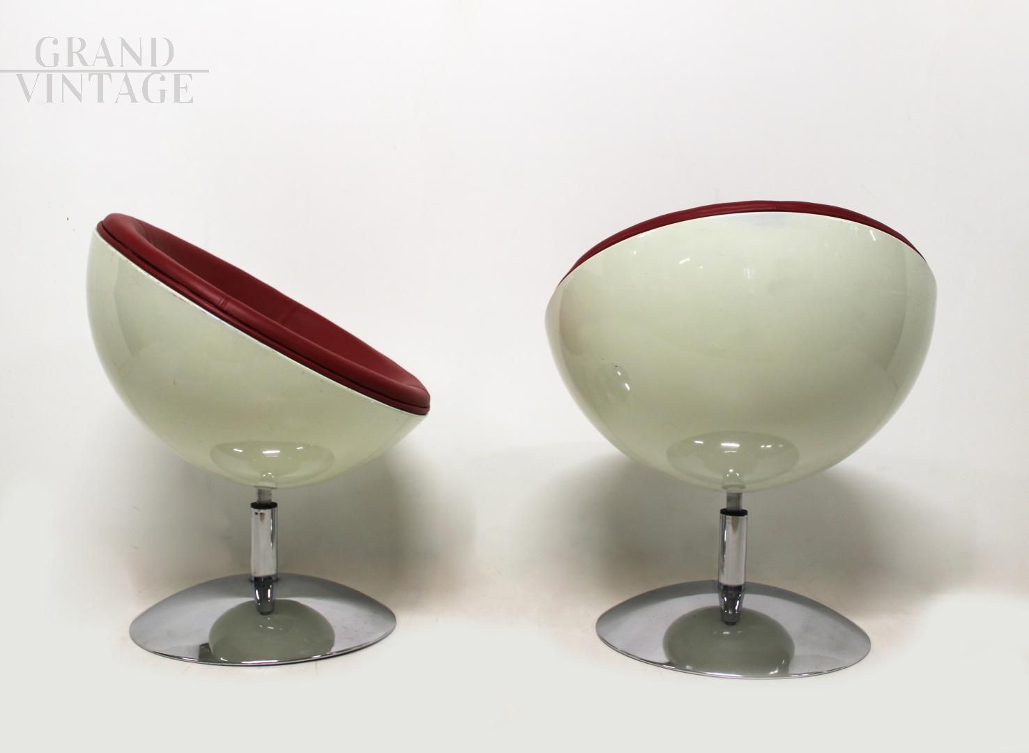 Coppia di poltrone a sfera girevoli stile Space Age, Italia anni '70