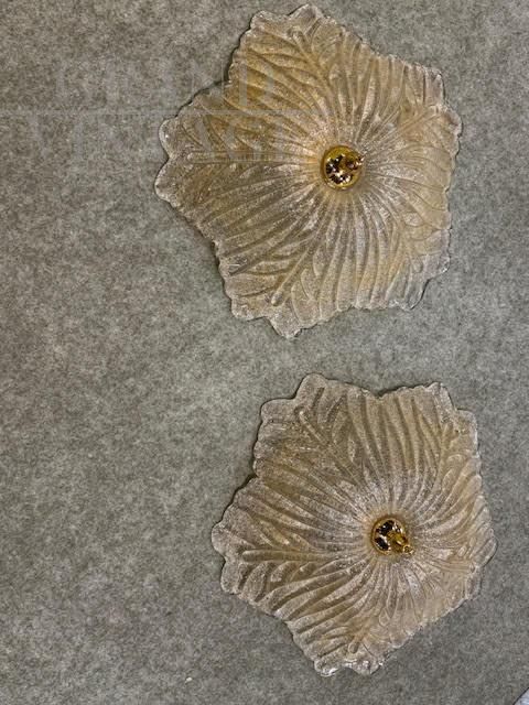 Set di 3 plafoniere a fiore in vetro di Murano attr. Aureliano Toso