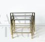 Set di 3 tavolini a nido in ottone e vetro, vintage 1970