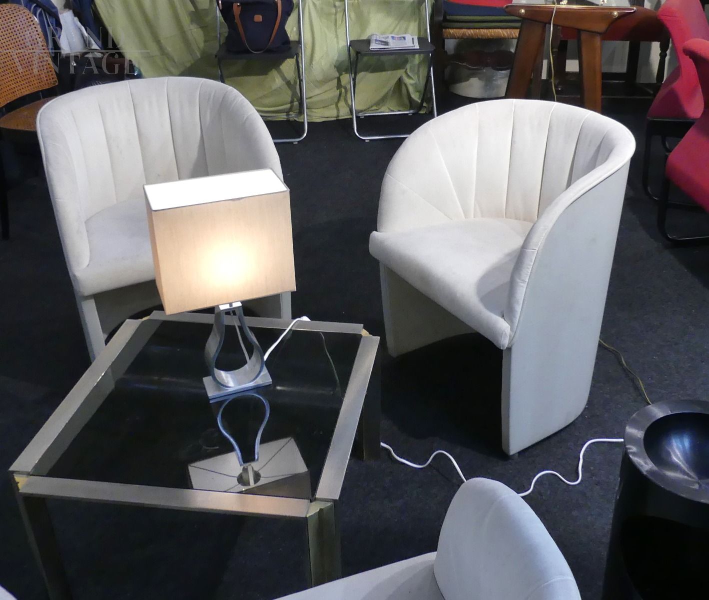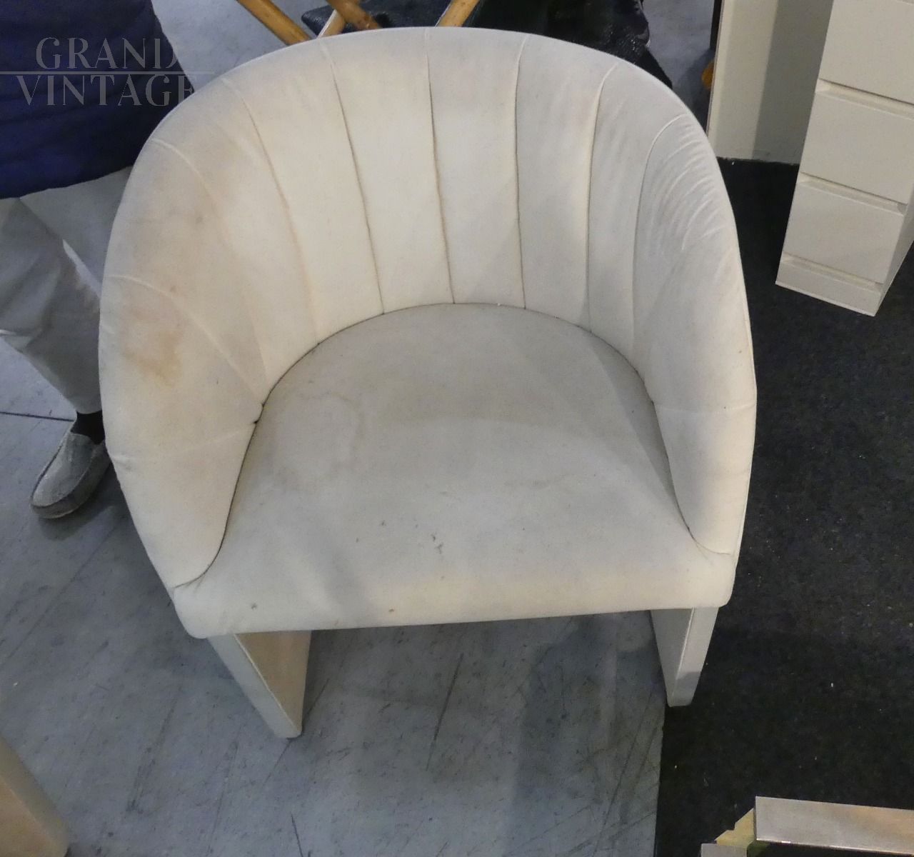 Set di 4 poltroncine vintage in alcantara avorio e skai, anni '80