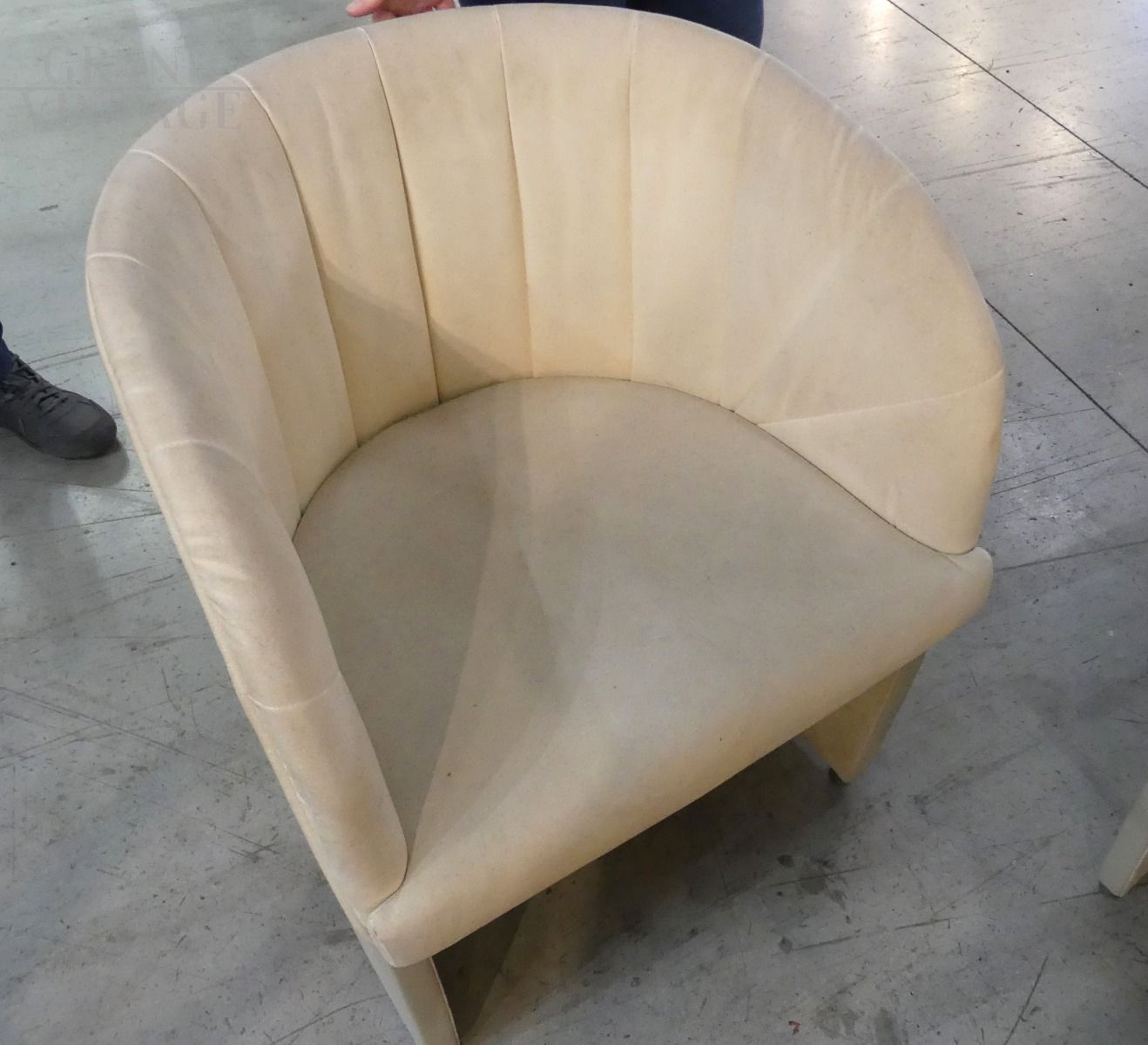 Set di 4 poltroncine vintage a pozzetto in alcantara color avorio con schienale in skai avorio, morbide e avvolgenti, prodotte in Italia negli anni '80.