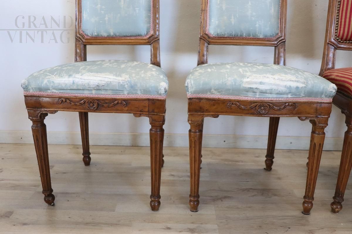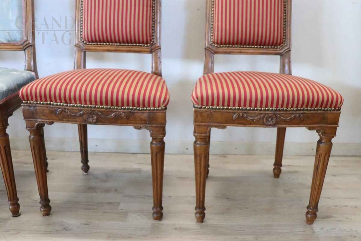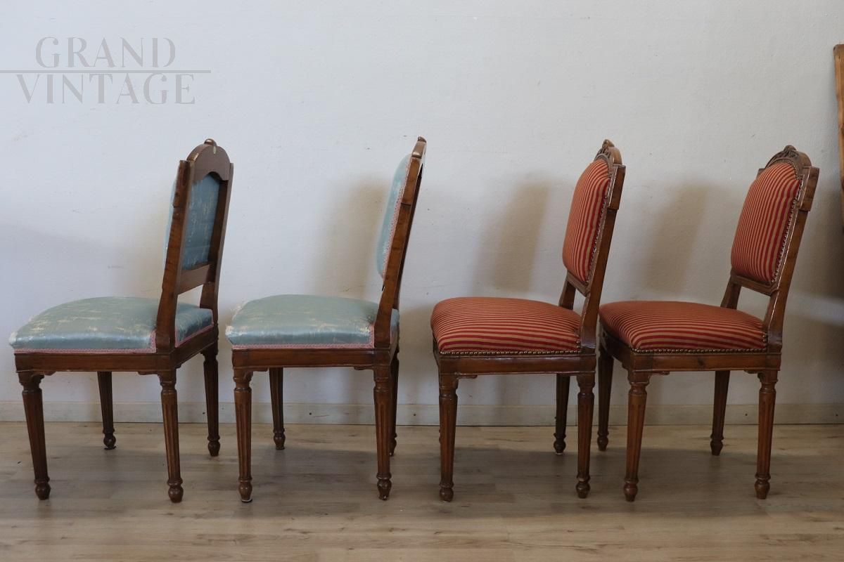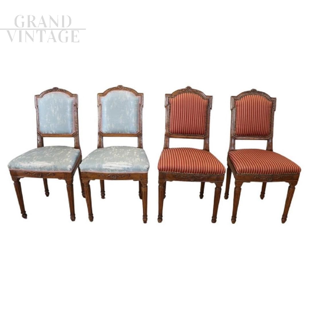 Set di 4 sedie antiche Luigi XVI in noce intagliato