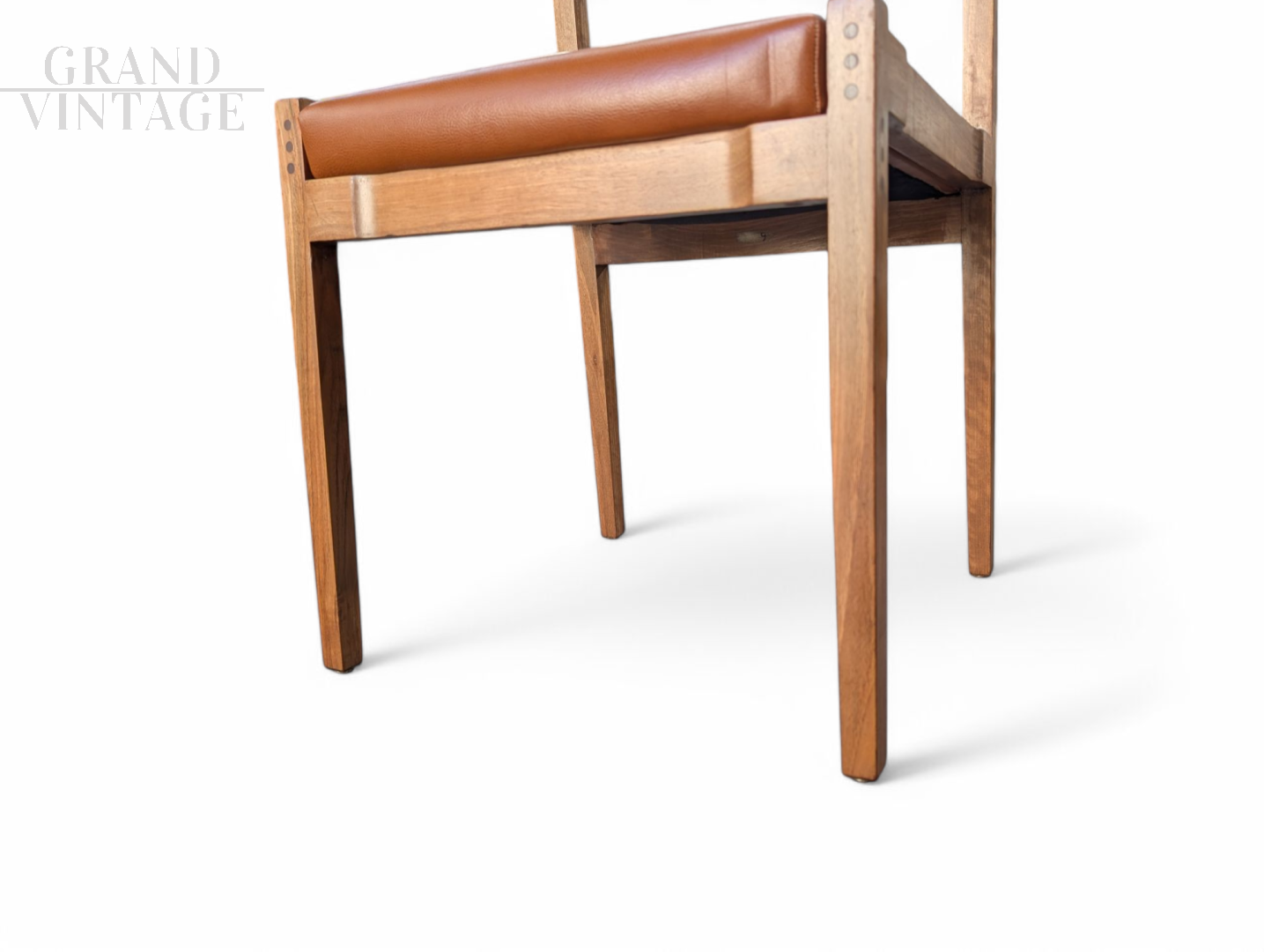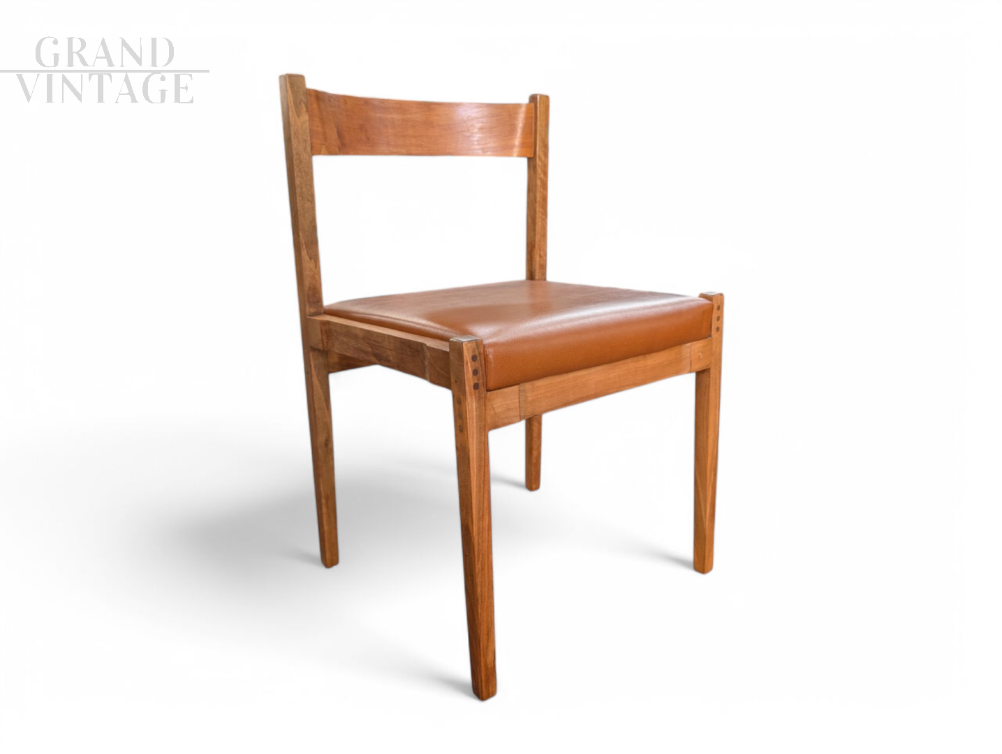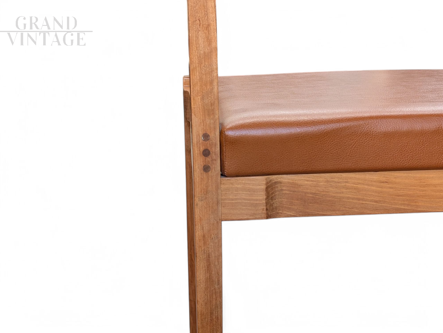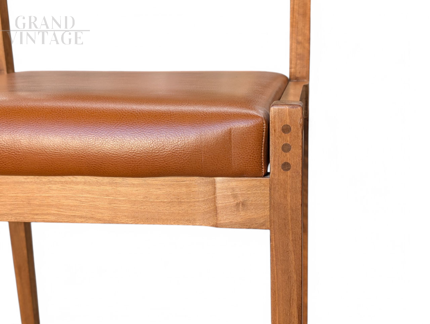 Set di 4 sedie Cassina in faggio e pelle marrone, Italia anni '70