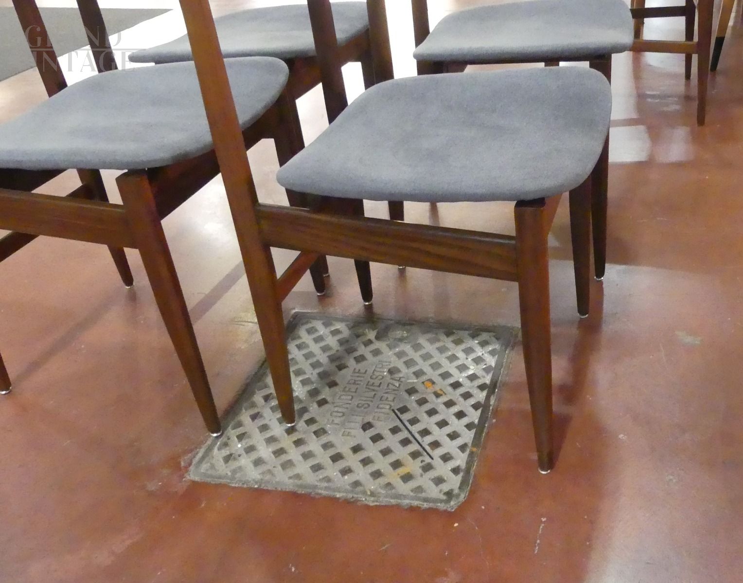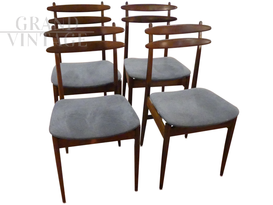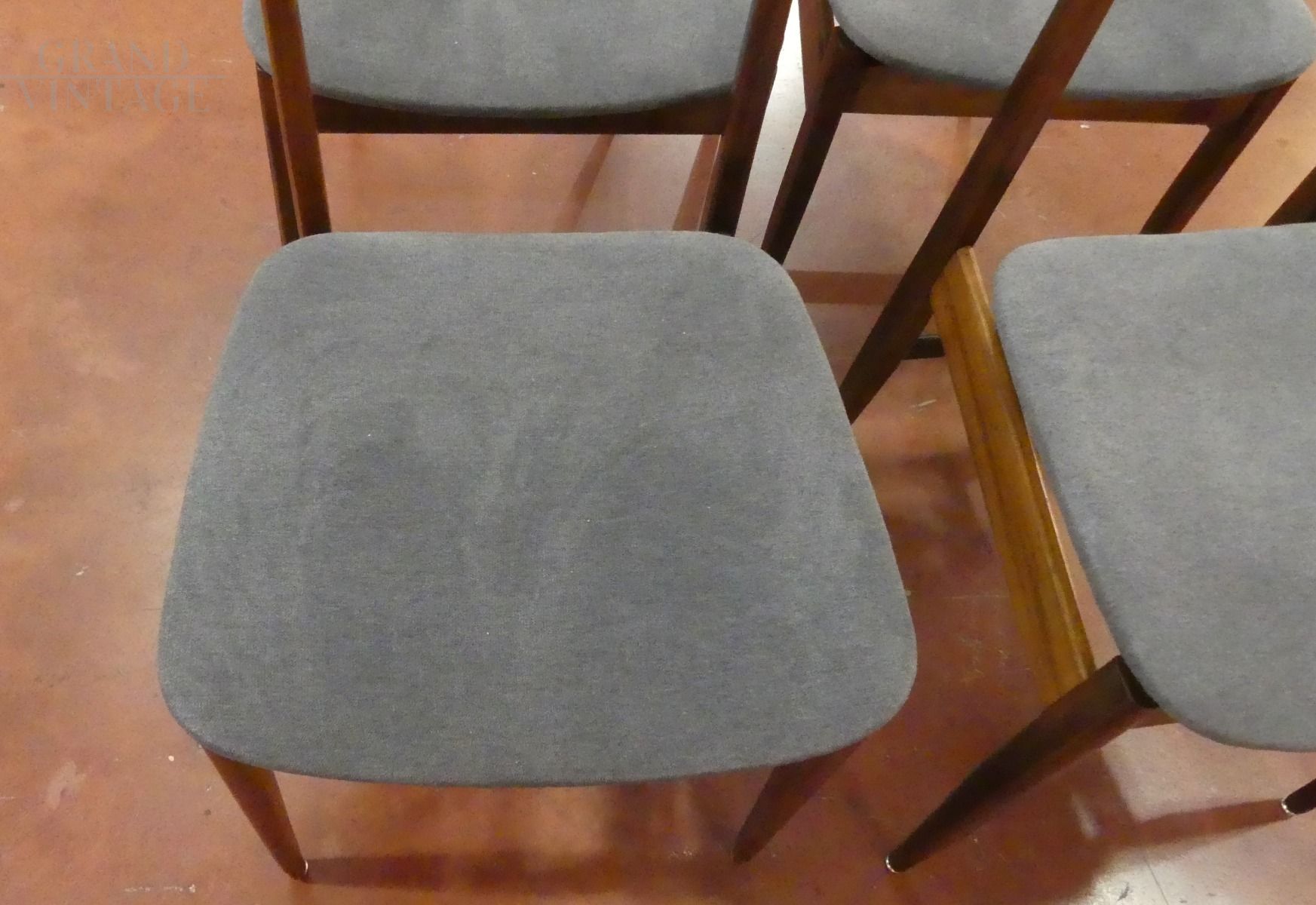 Set completo di 4 sedie desegnate da Vittorio Dassi, originali, realizzate in legno teak, sono state restaurate e rifoderate.