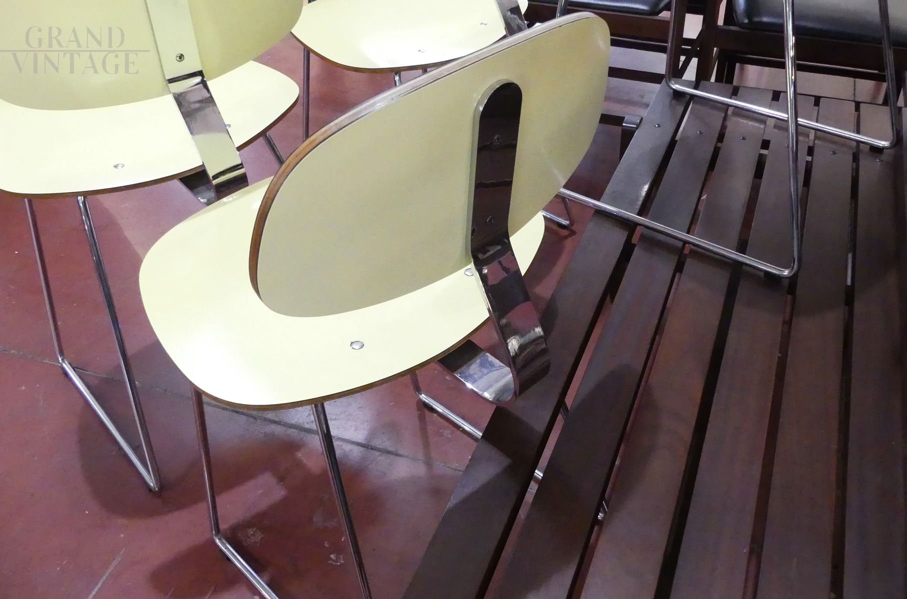 Set di 4 sedie design di Georges Coslin in metallo e formica gialla