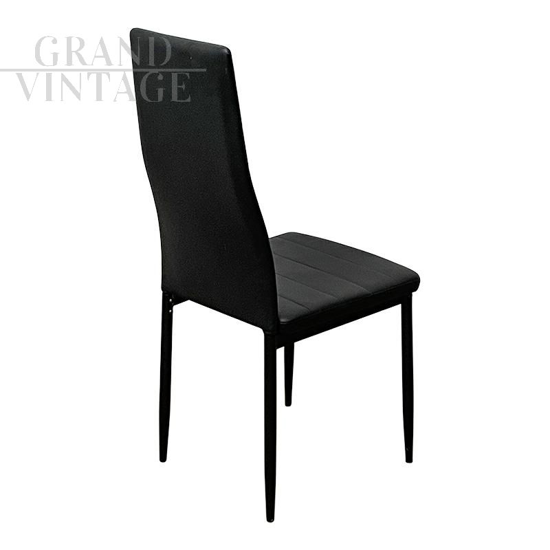 Set di 4 sedie dal design moderno in pelle nera con schienale alto.