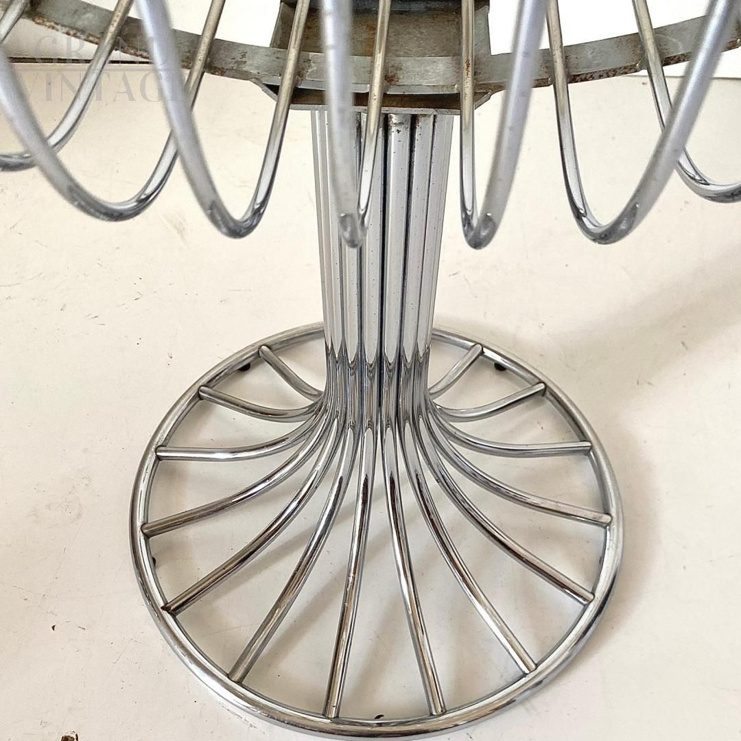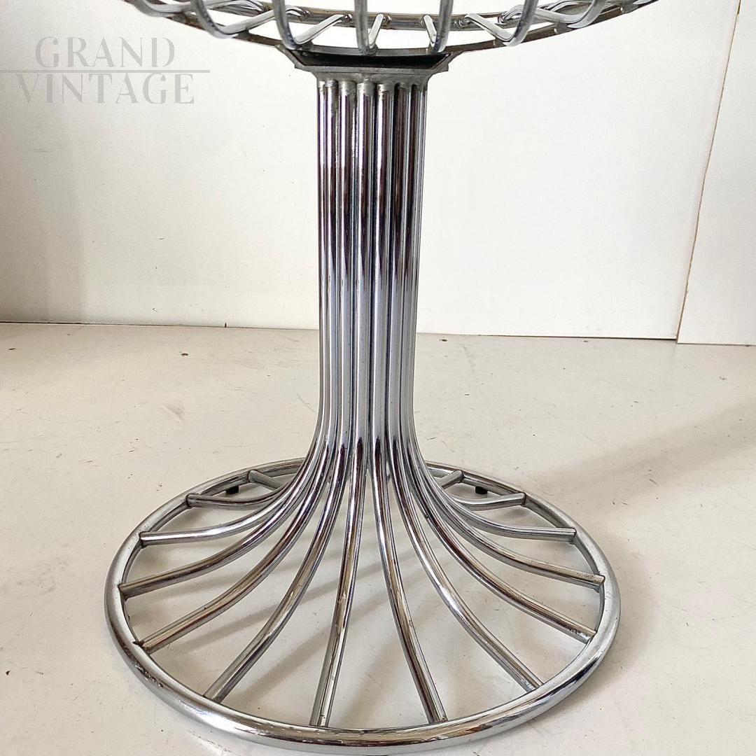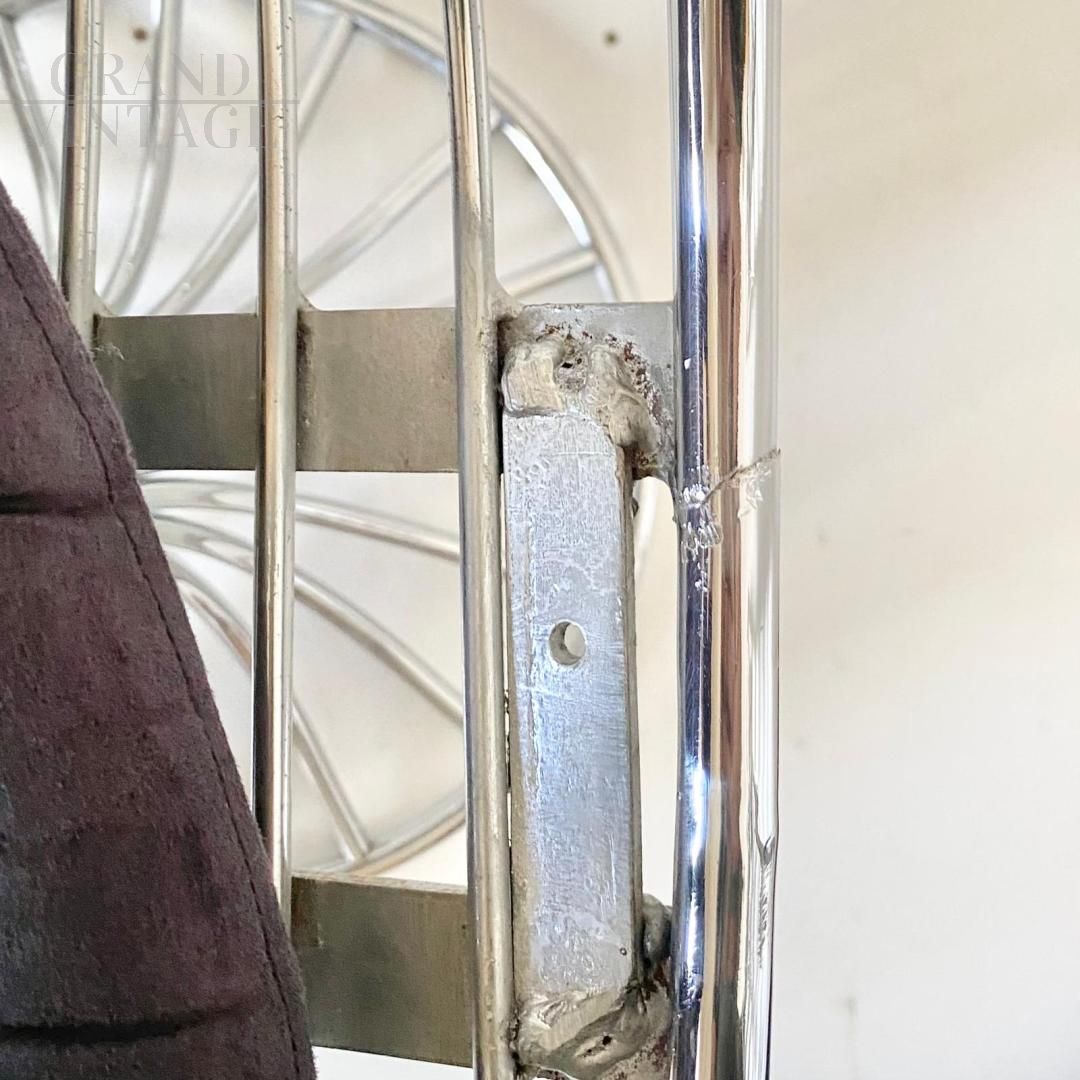Set di 4 sedie da pranzo Space Age, design di Gastone Rinaldi per RIMA, Italia anni '70. Set di quattro sedie da pranzo moderne italiane in acciaio cromato attribuite a Gastone Rinaldi e prodotte da RIMA negli anni '70. Sedie realizzate in raffinato tubolare di acciaio cromato con una seduta aerodinamica e un'elegante base a fasci in acciaio con base rotonda. Buone condizioni. L'acciaio è stato lucidato. Le micro crepe superficiali della struttura sulle sedie sono state rinforzate in via precauzionale con micro punti di saldatura (non visibili e come mostrato nelle immagini). Copri sedute originali senza danni ma con patina del tempo.
