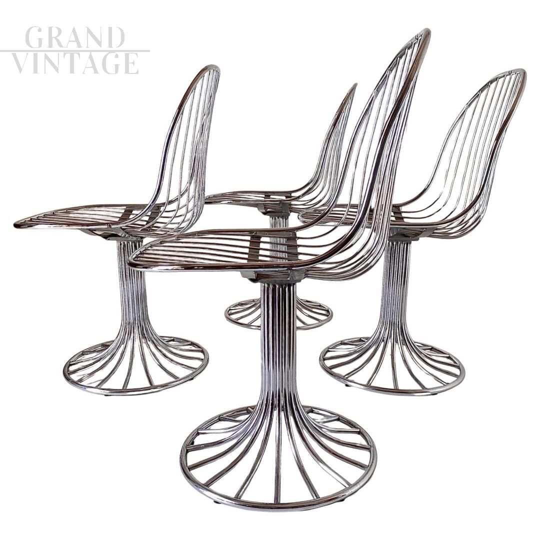 Set di 4 sedie di Gastone Rinaldi per Rima in acciaio cromato