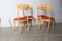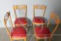 Gruppo di 4 sedie vintage anni '50 in legno chiaro di acero con seduta in skai rosso, modernariato italiano nello stile dio Ico Parisi, restaurate. Design molto bello.