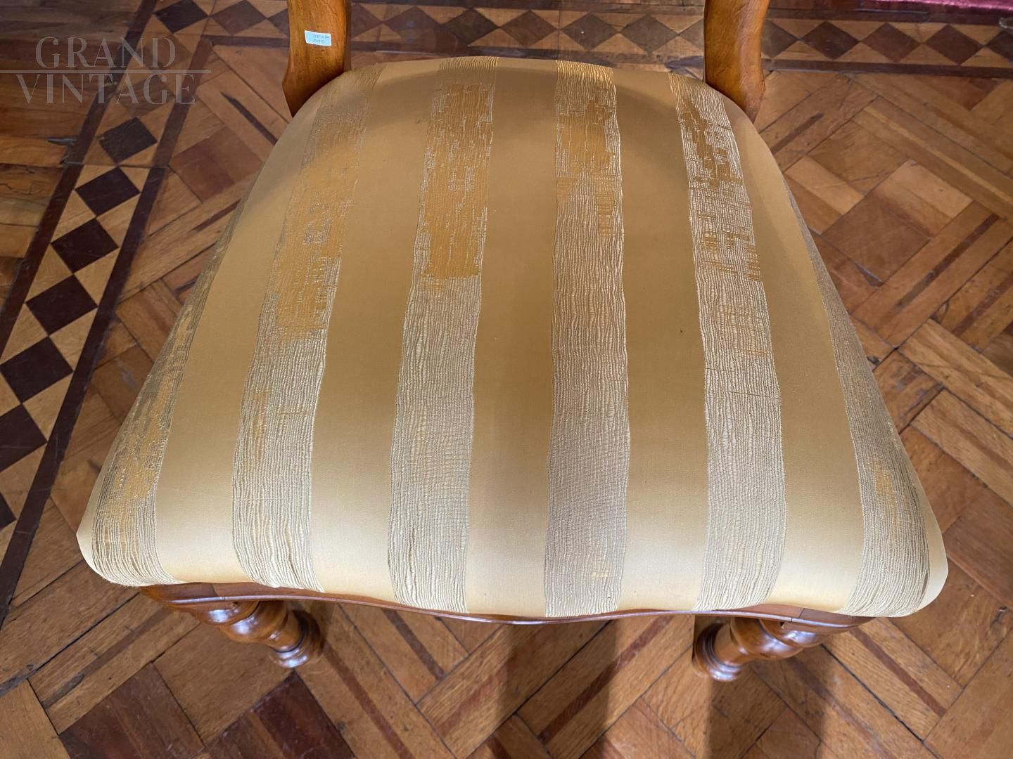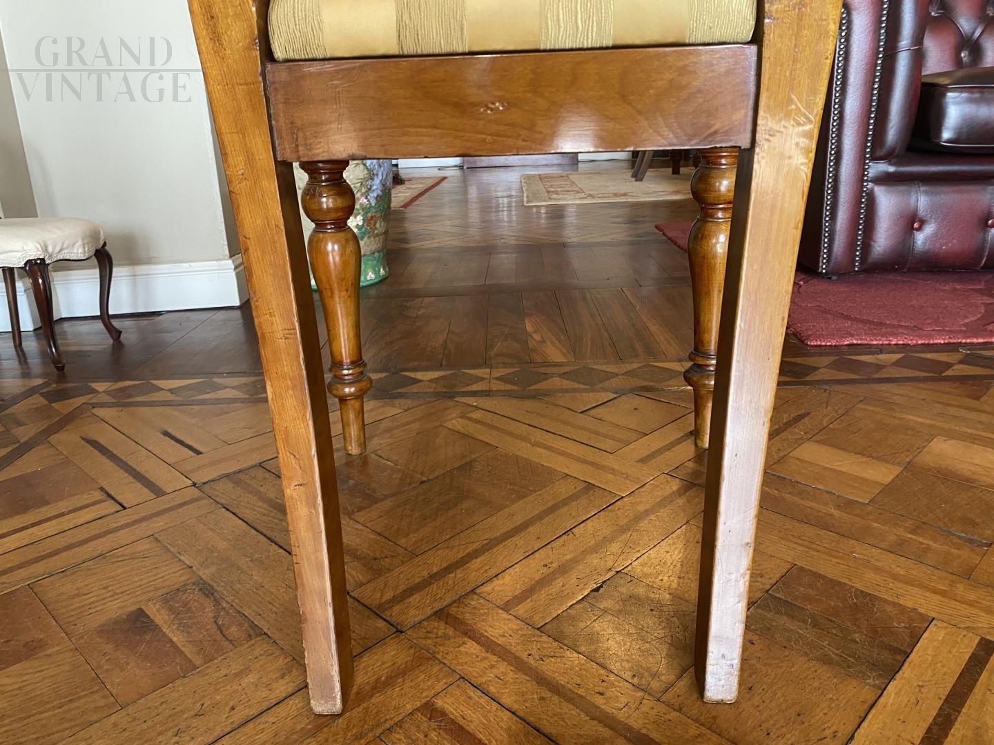 Gruppo di 4 sedie antiche inglesi di epoca vittoriana in mogano biondo, del periodo Regina Vittoria (1860 circa). Le sedie sono in buono stato, con seduta nuova e stoffa in ottime condizioni.