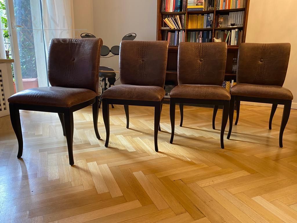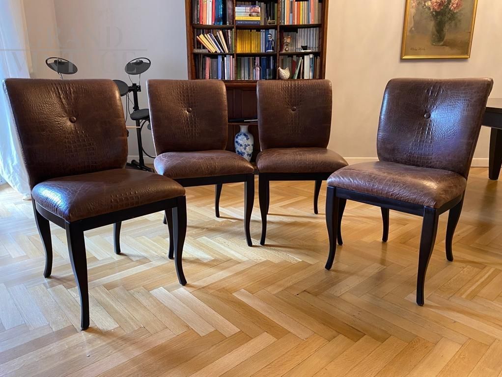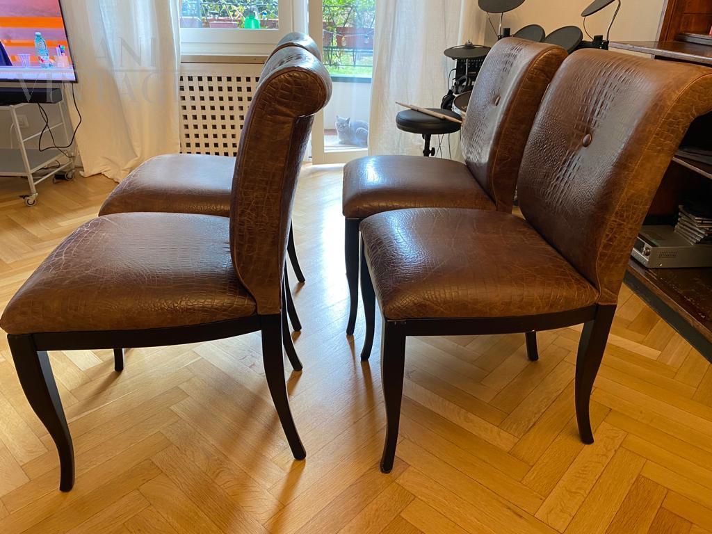 Set di 4 sedie poltroncine stile vintage di marca Smania in pelle marrone con rilievo a coccodrillo, perfette per ambienti eleganti o in stile industriale. Questo modello è fuori produzione.