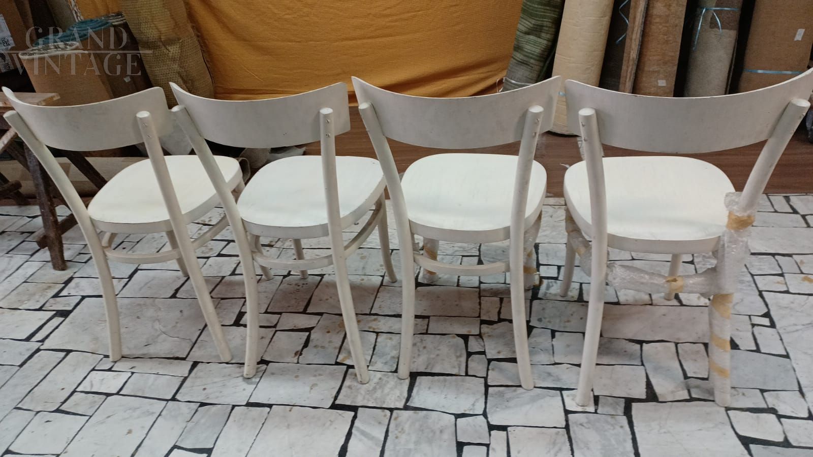 Set di 4 sedie Sautto & Liberale in faggio bianco decapato