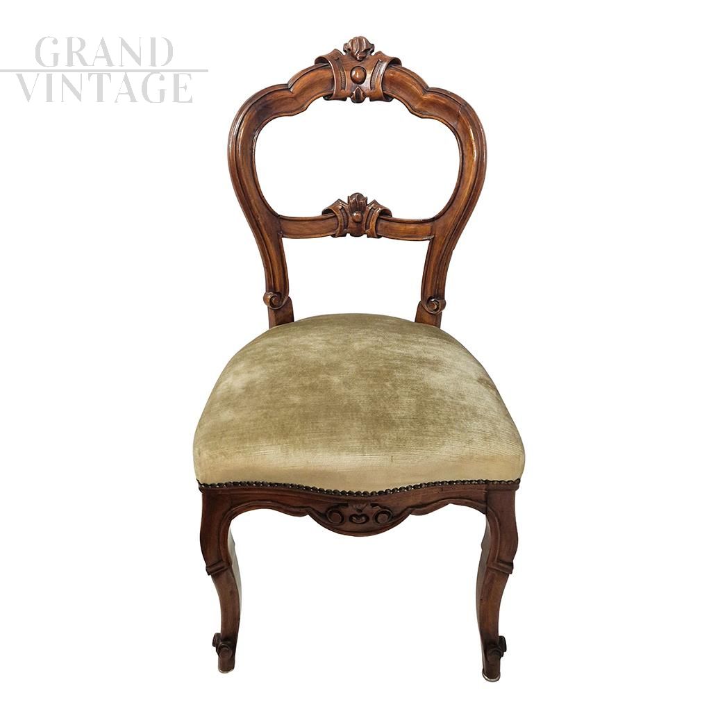 Set di 5 sedie in stile antico Luigi Filippo in legno con seduta imbottita in tessuto originale dell'epoca.