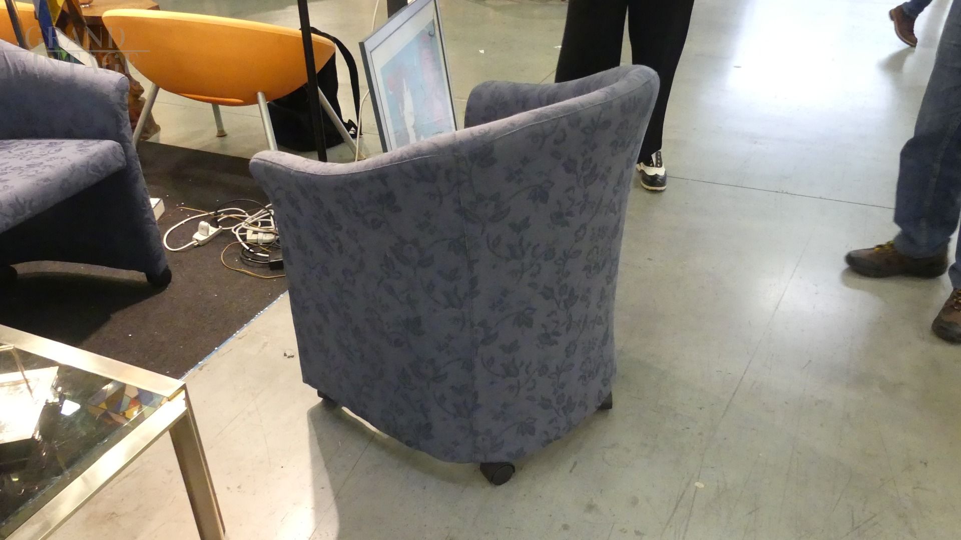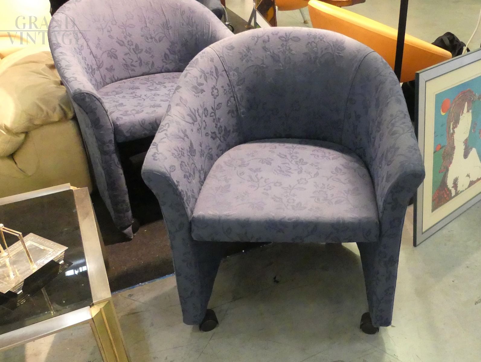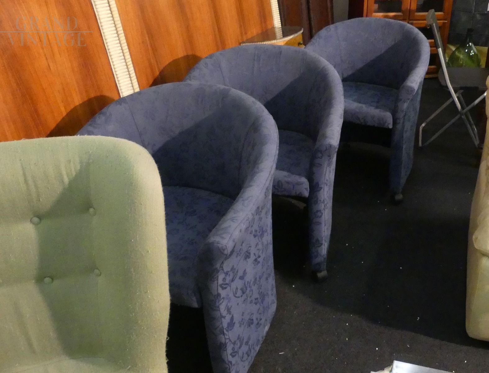 Set di 6 poltroncine vintage anni '80 con rotelle, in buone condizioni, la fodera in tessuto blu è l'originale.