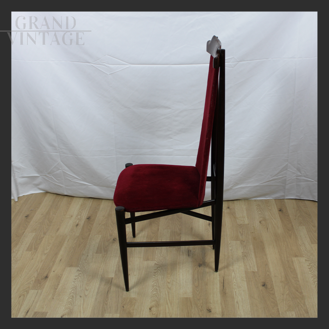 Questo straordinario set di 6 sedie, attribuito a Sergio Rodrigues, rappresenta l'eleganza del design Mid-Century Modern brasiliano degli anni '60. Le sedie si distinguono per lo schienale alto e slanciato, la struttura in legno massello scuro e il velluto rosso profondo che dona un tocco di lusso. La curvatura in legno sulla parte superiore dello schienale testimonia l'attenzione artigianale ai dettagli, tipica delle opere di Rodrigues. Perfette per un ambiente sofisticato, queste sedie sono un connubio tra stile e funzionalità.