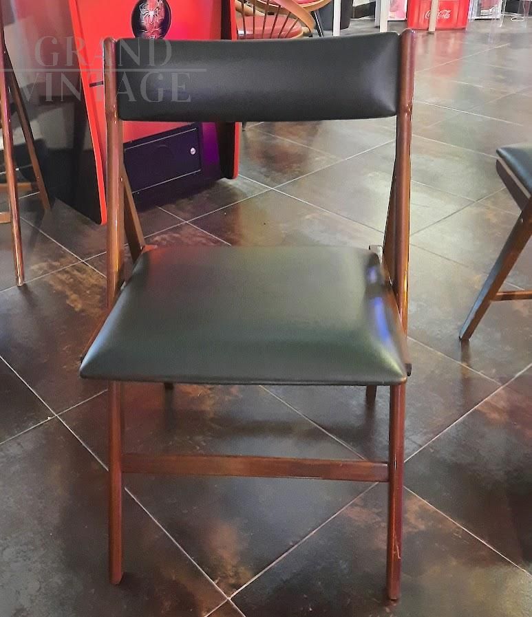 Set di 6 sedie pieghevoli Eden disegnate da Gio Ponti e prodotte da Reguitti in legno scuro ed ecopelle verde scuro, Italia anni '60. Sono in buone condizioni ma presentano leggeri segni del tempo. In particolare a una sedia manca la spalliera di pelle, facile da far rifare dal tappezziere.