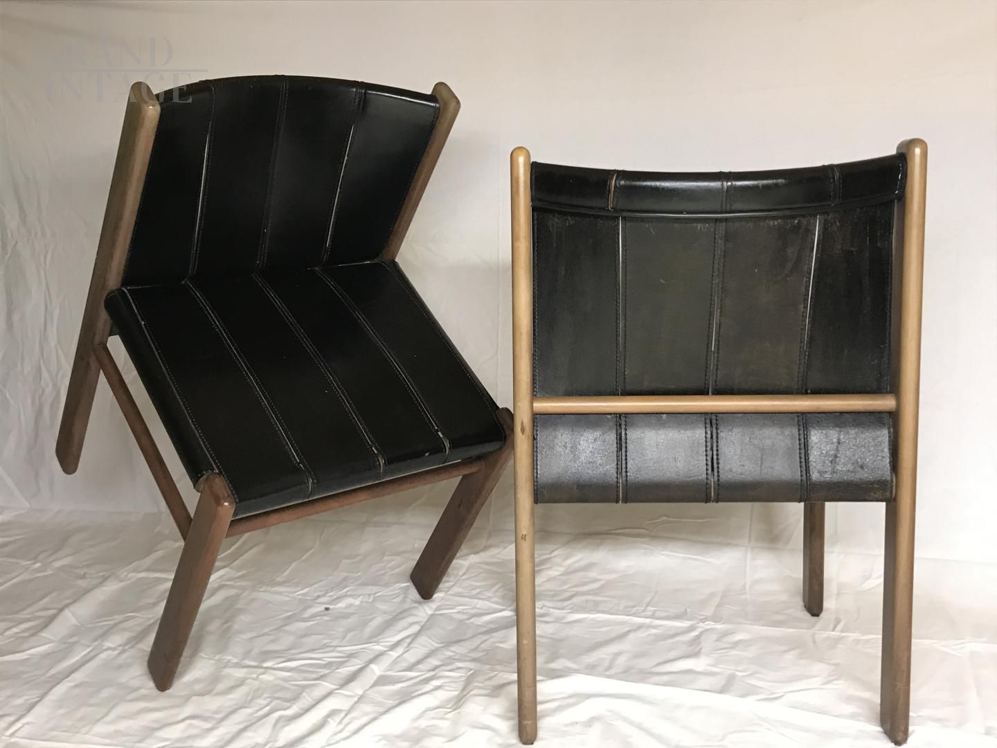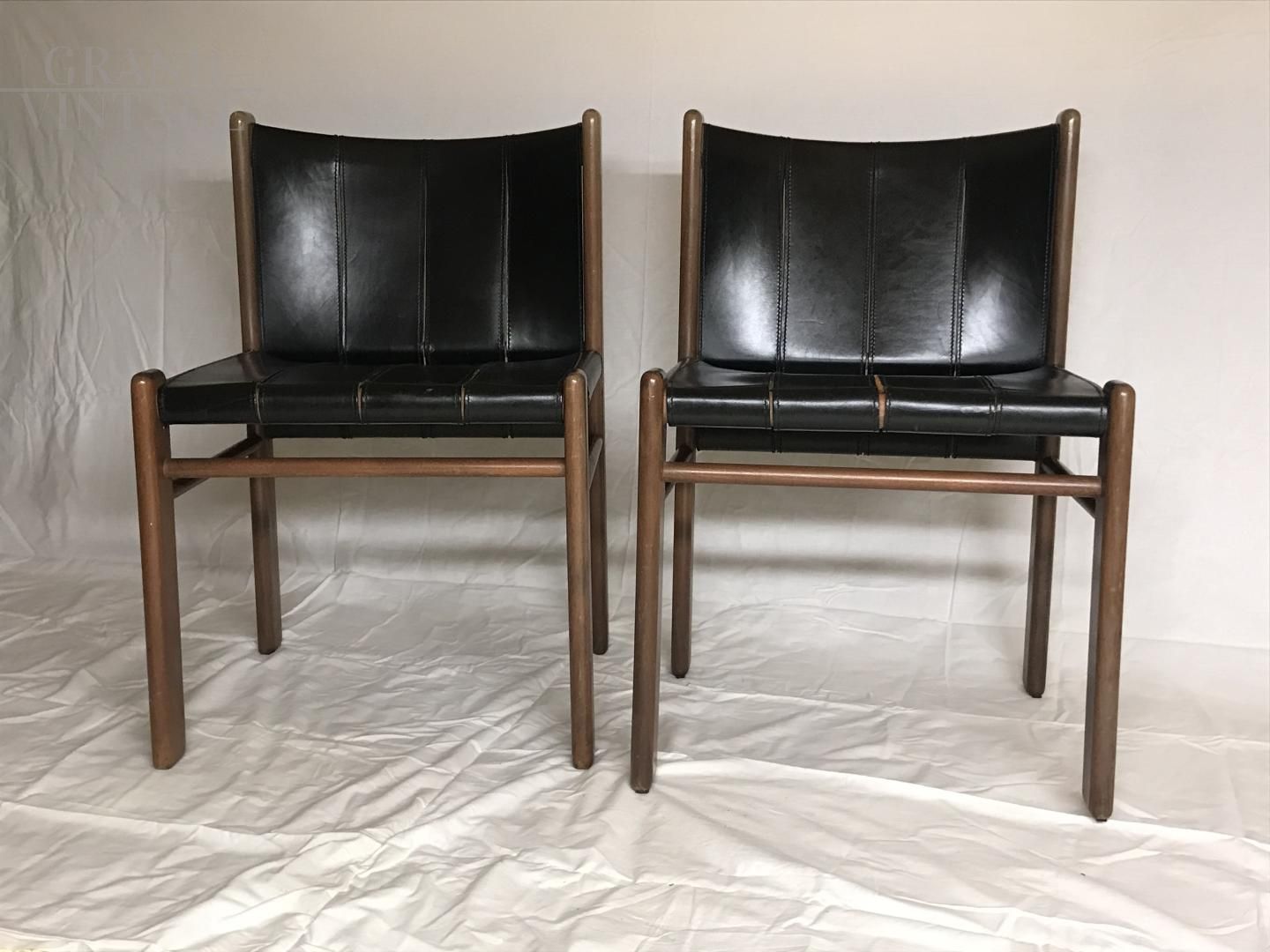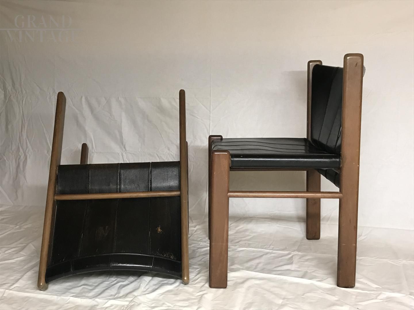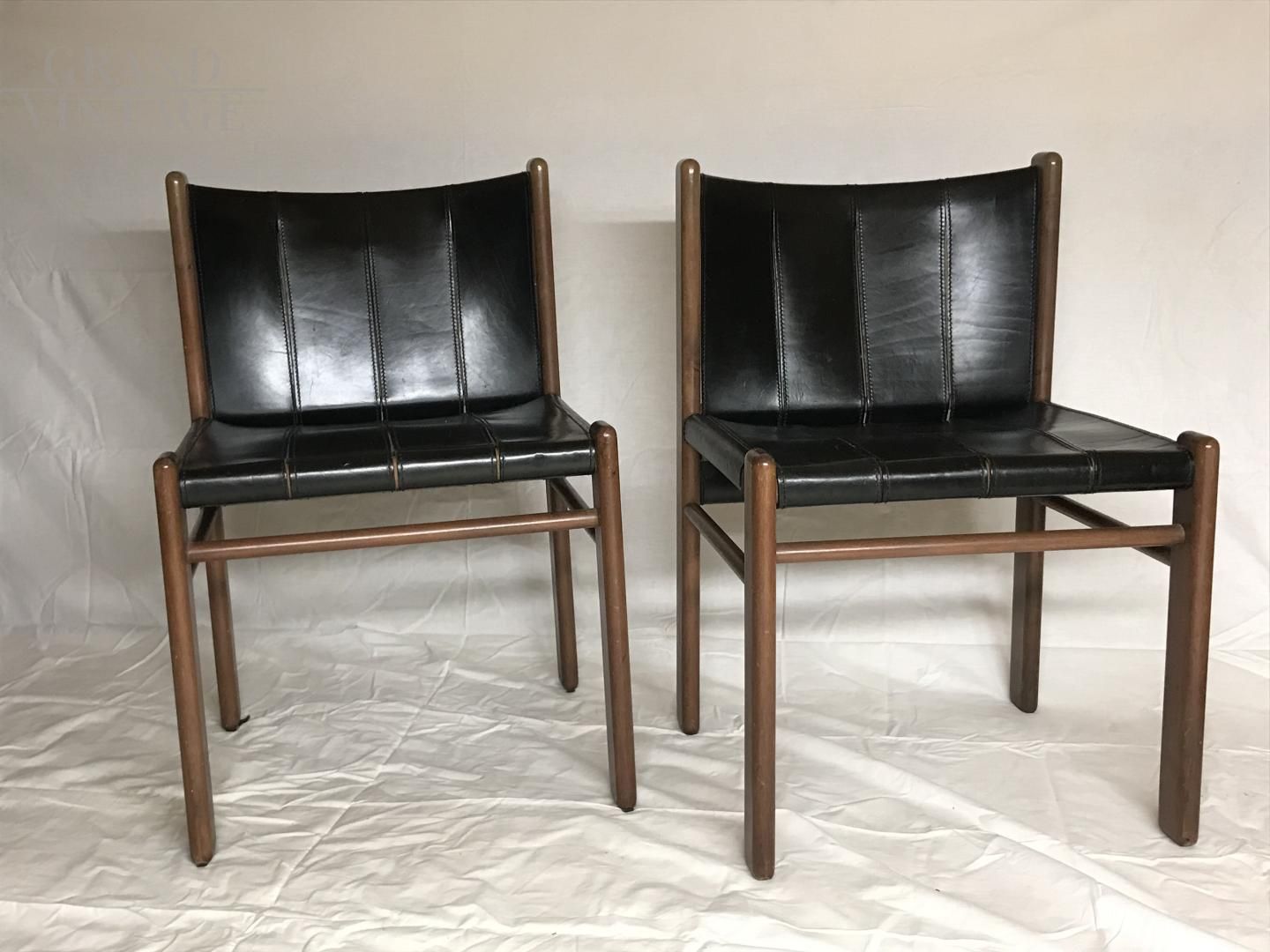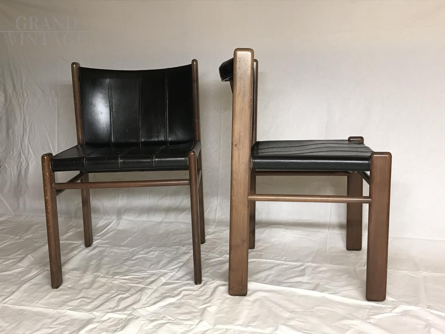 Set di 6 sedie Gianfranco Frattini per Bernini in pelle nera