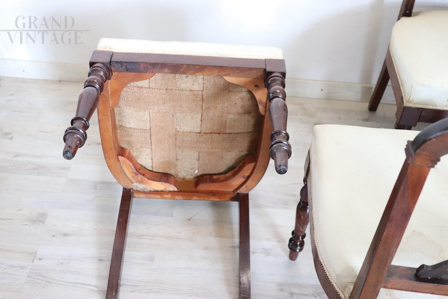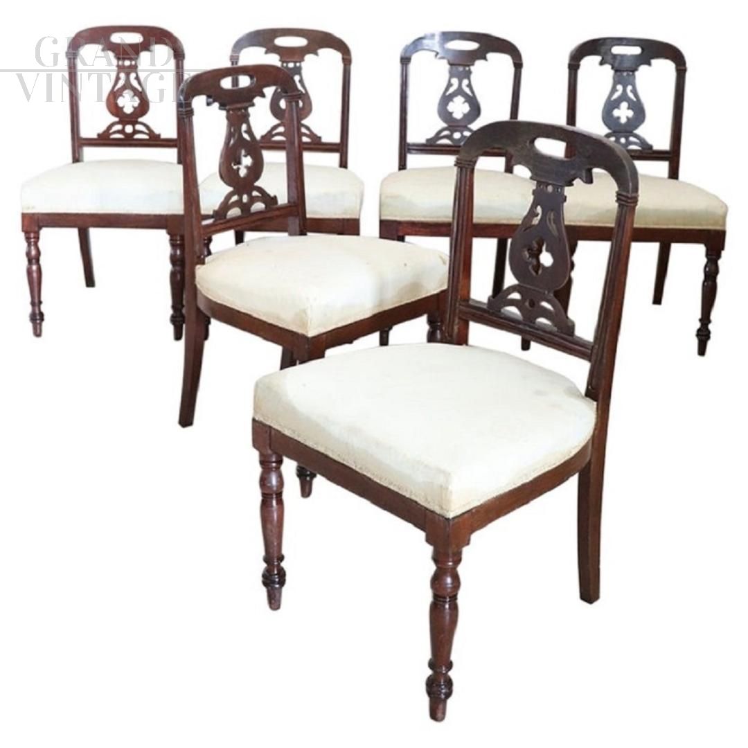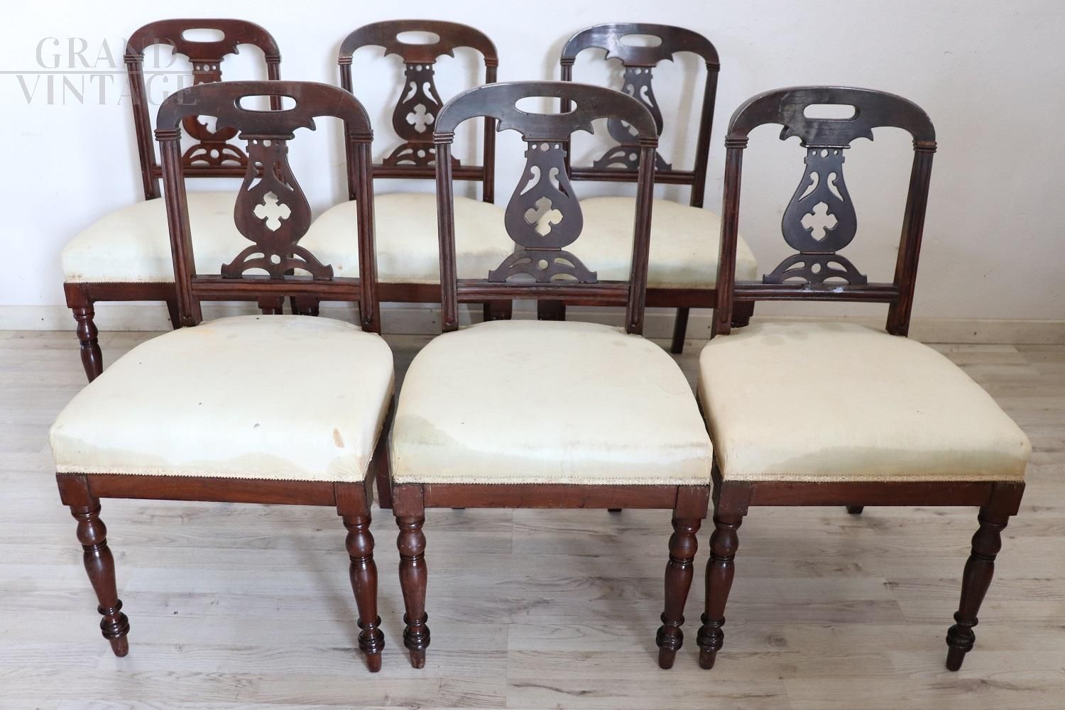 Set di 6 sedie inglesi antiche in mogano dell'800 con seduta imbottita