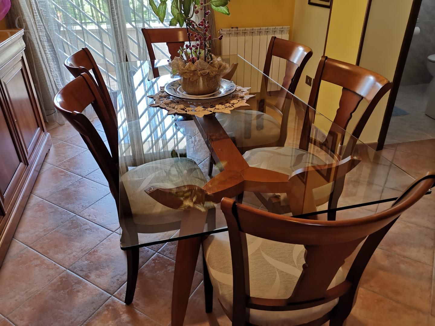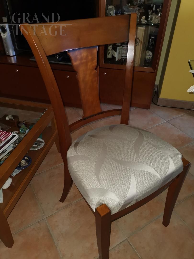 Set di 6 sedie design La Grange del '900 alle forme classiche ed eleganti, in legno ciliegio massello, con seduta imbottita.