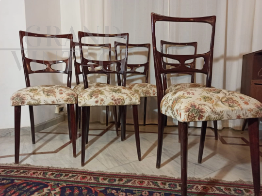 Set di sei sedie design Paolo Buffa in mogano e stoffa vintage, anni 50.
