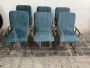Set di 6 sedie vintage in metallo dorato e velluto blu petrolio